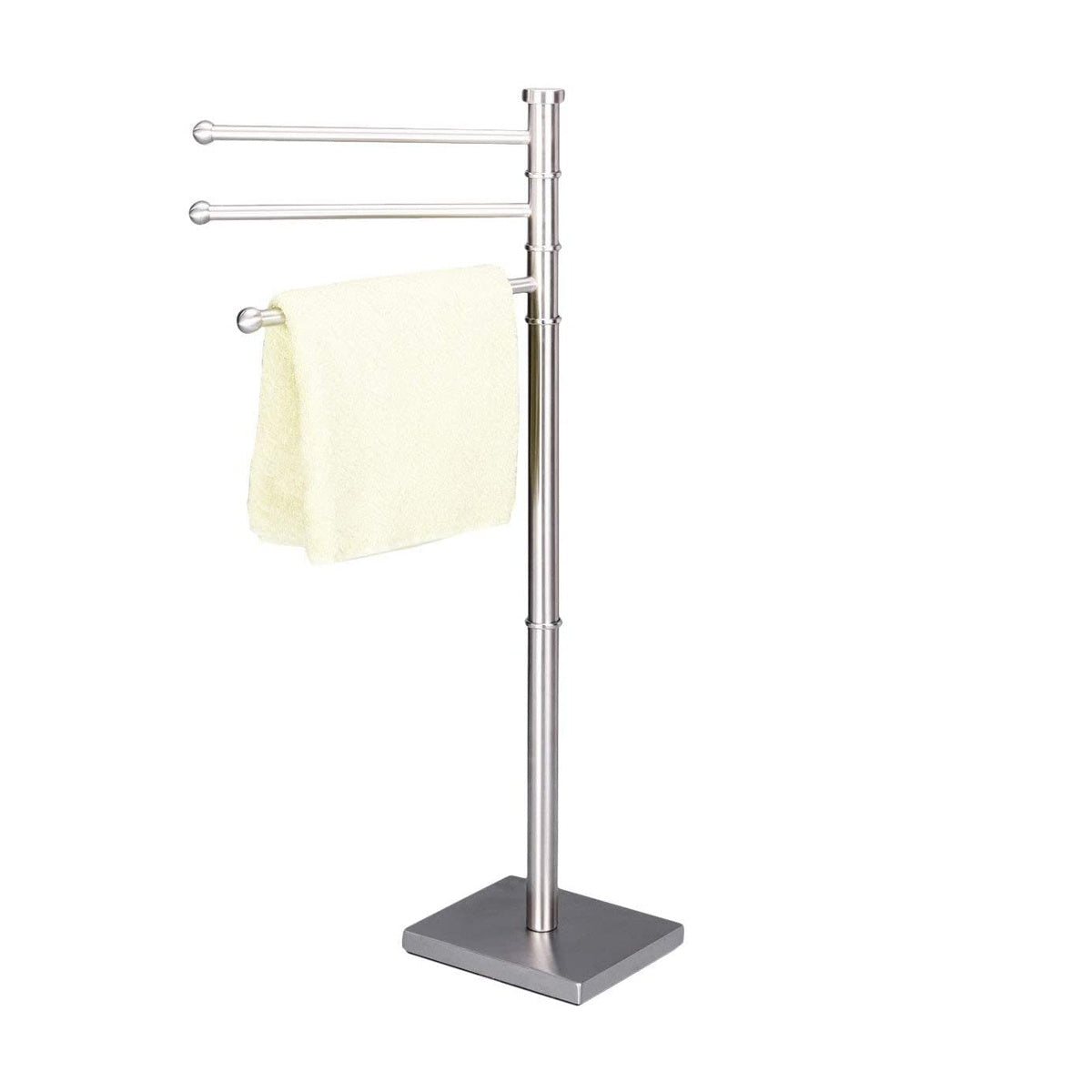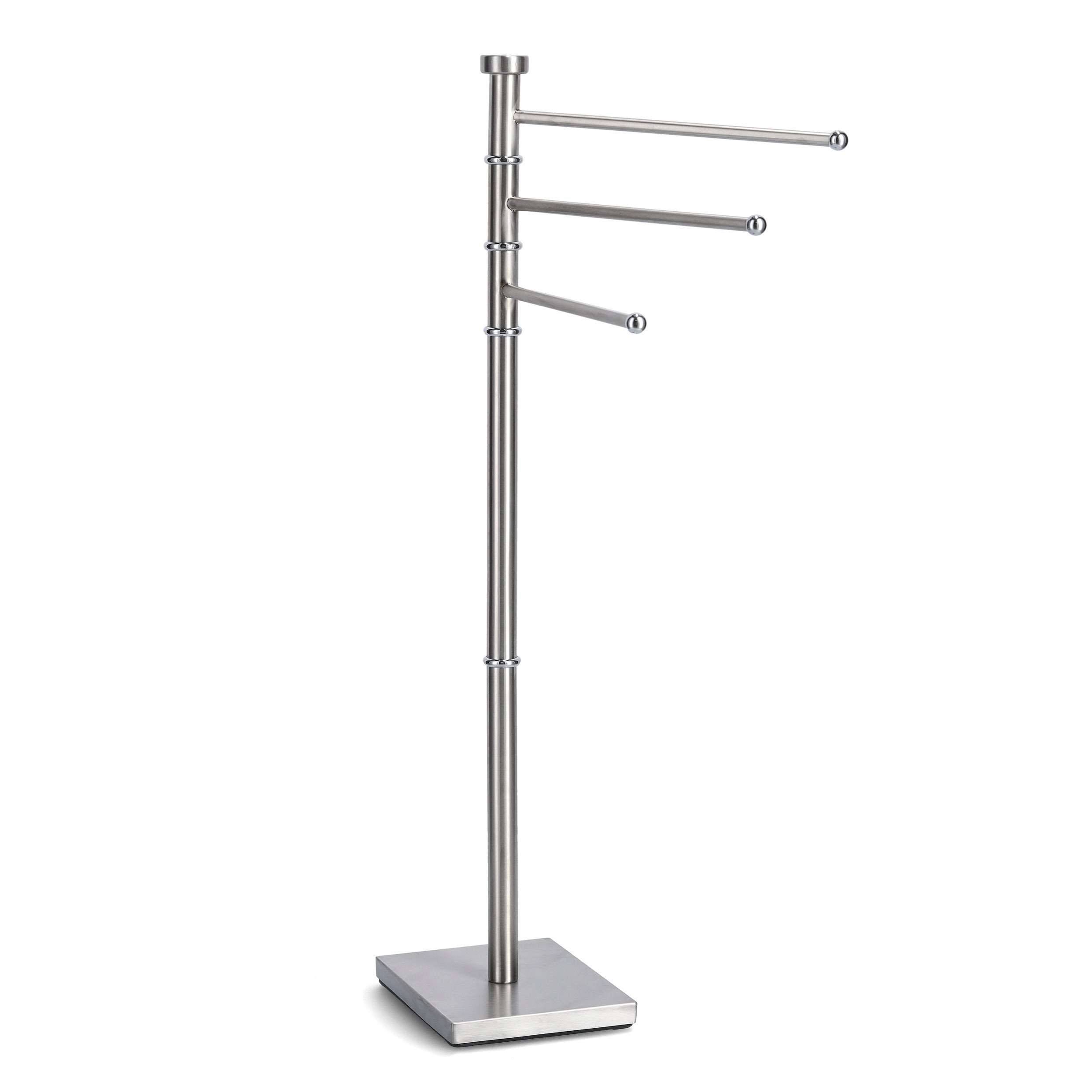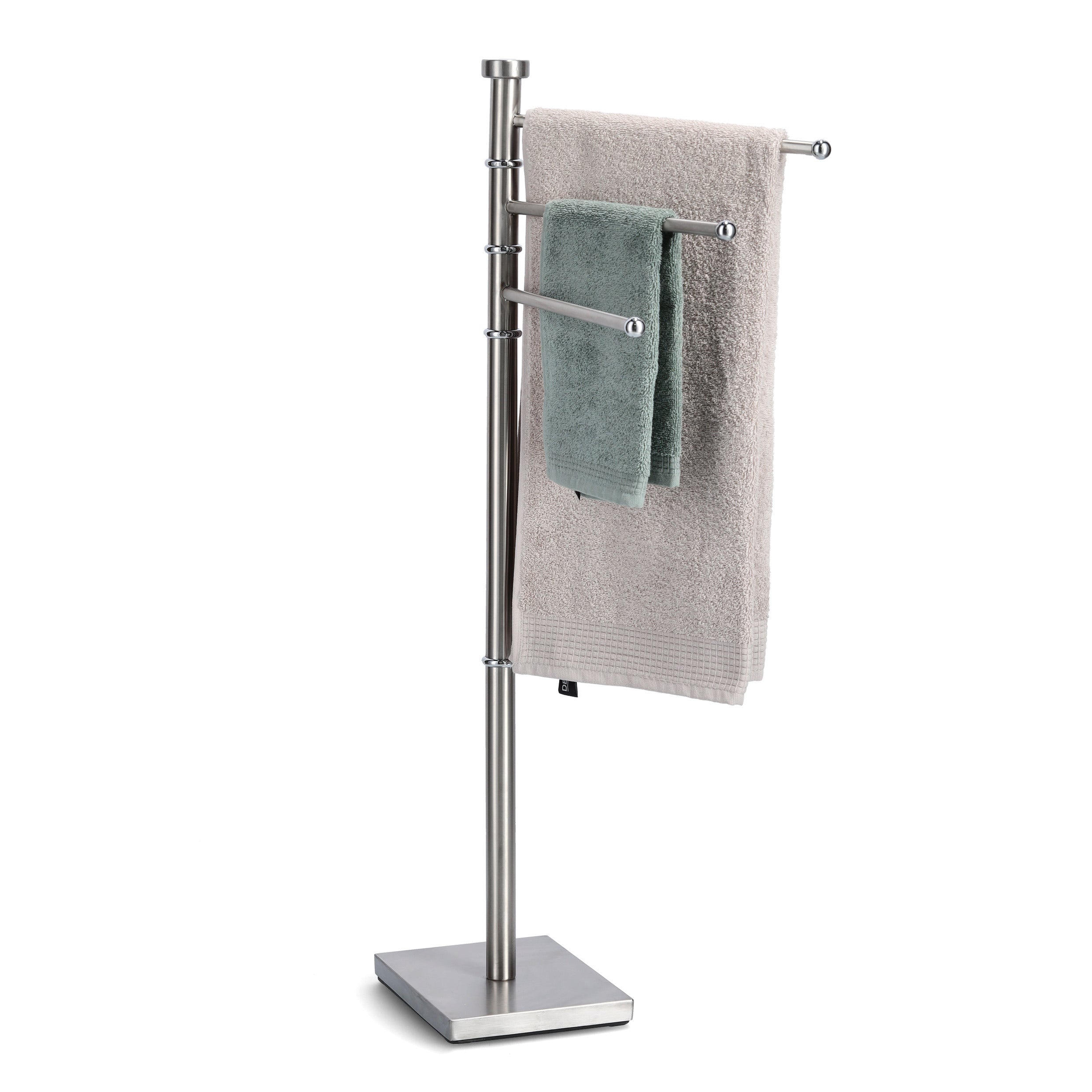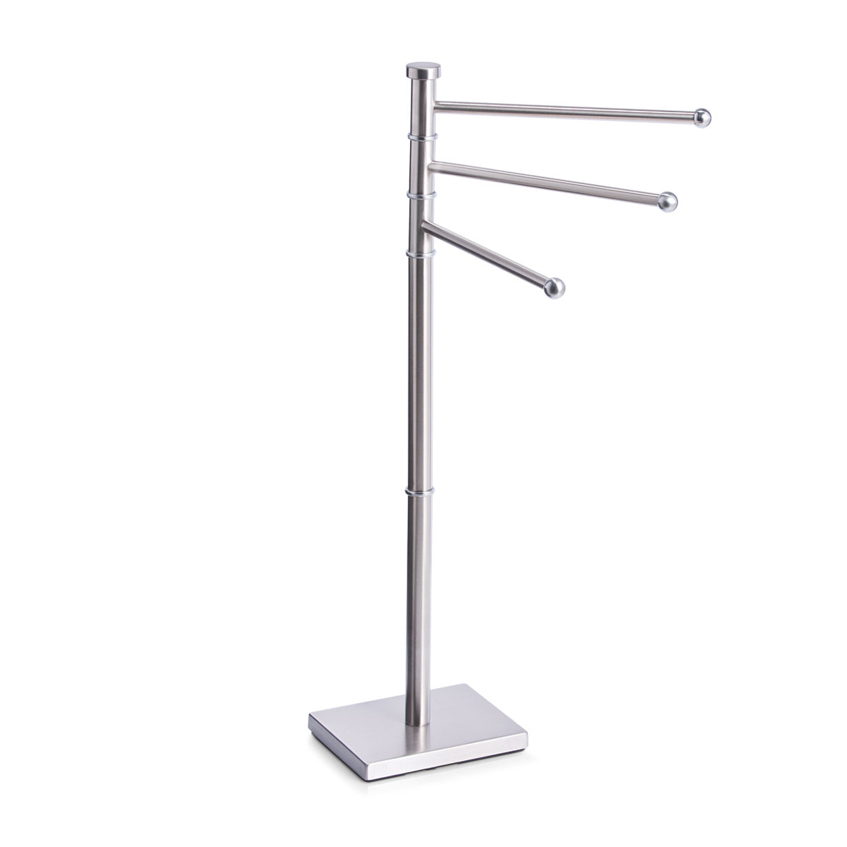 Zeller Handdoekenrek, 3-stangs. Dit handdoekenrek is bij uitstek geschikt voor in de badkamer en is vrijstaand. Het rek is gemaakt van hoogwaardig roestvrij staal en heeft 360 graden beweegbare armen voor optimale droging van de handdoeken. De verzwaarde voet voorkomt dat het droogrek verschuift. Materiaal: rvs. Afmeting: ca. 22 x 43,5 x 87 cm.