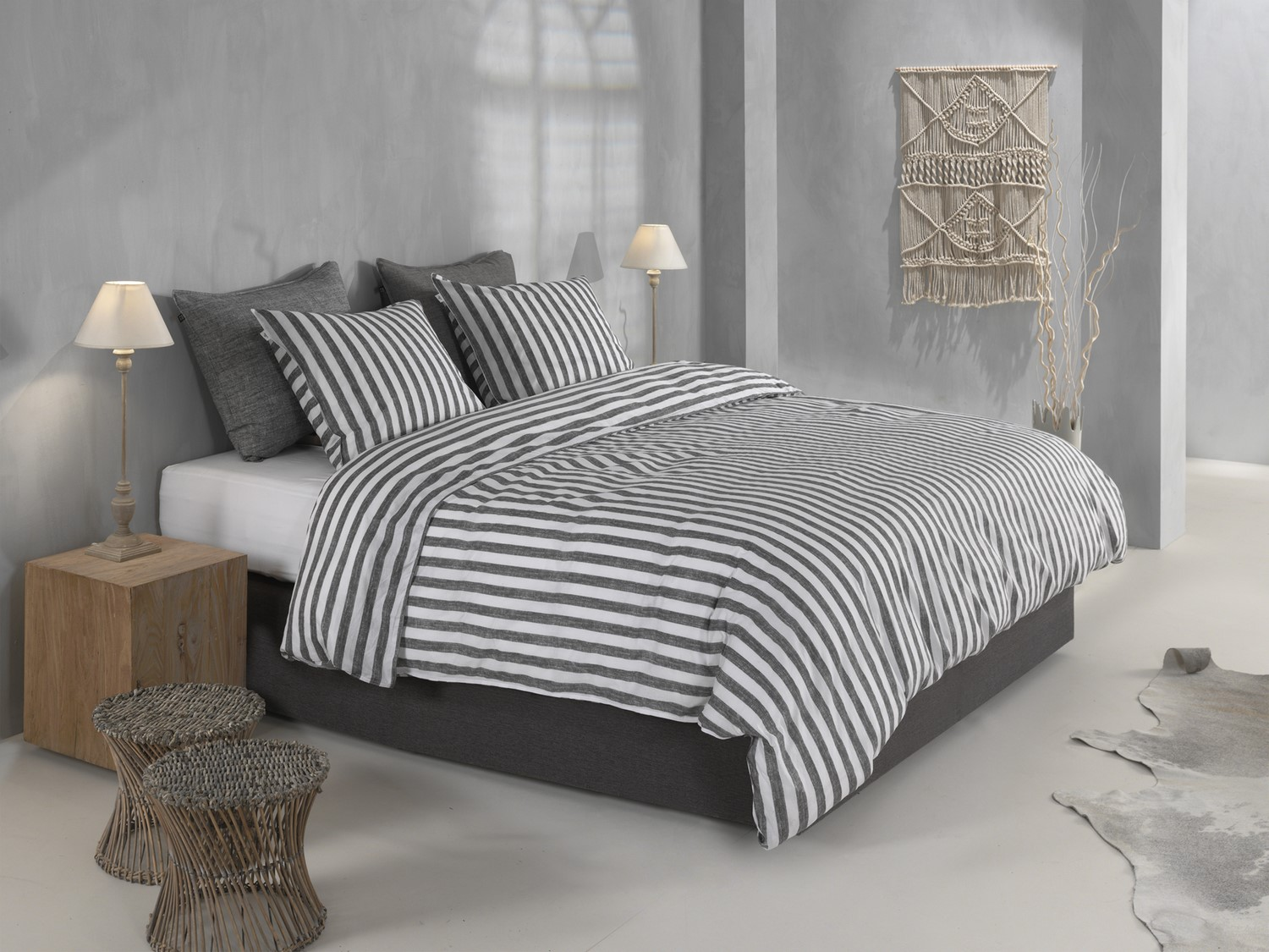 Het Lino dekbedovertrek in de kleur dark grey is gemaakt van 100% zacht katoen en heeft een linnenlook die momenteel zeer trendy is. Het dekbedovertrek van Zo Home is voorzien van een dubbele instopstrook en wordt geleverd met bijpassende kussenslopen. Ideaal voor iedereen die een trendy en comfortabele slaapkamer wil creëren.
