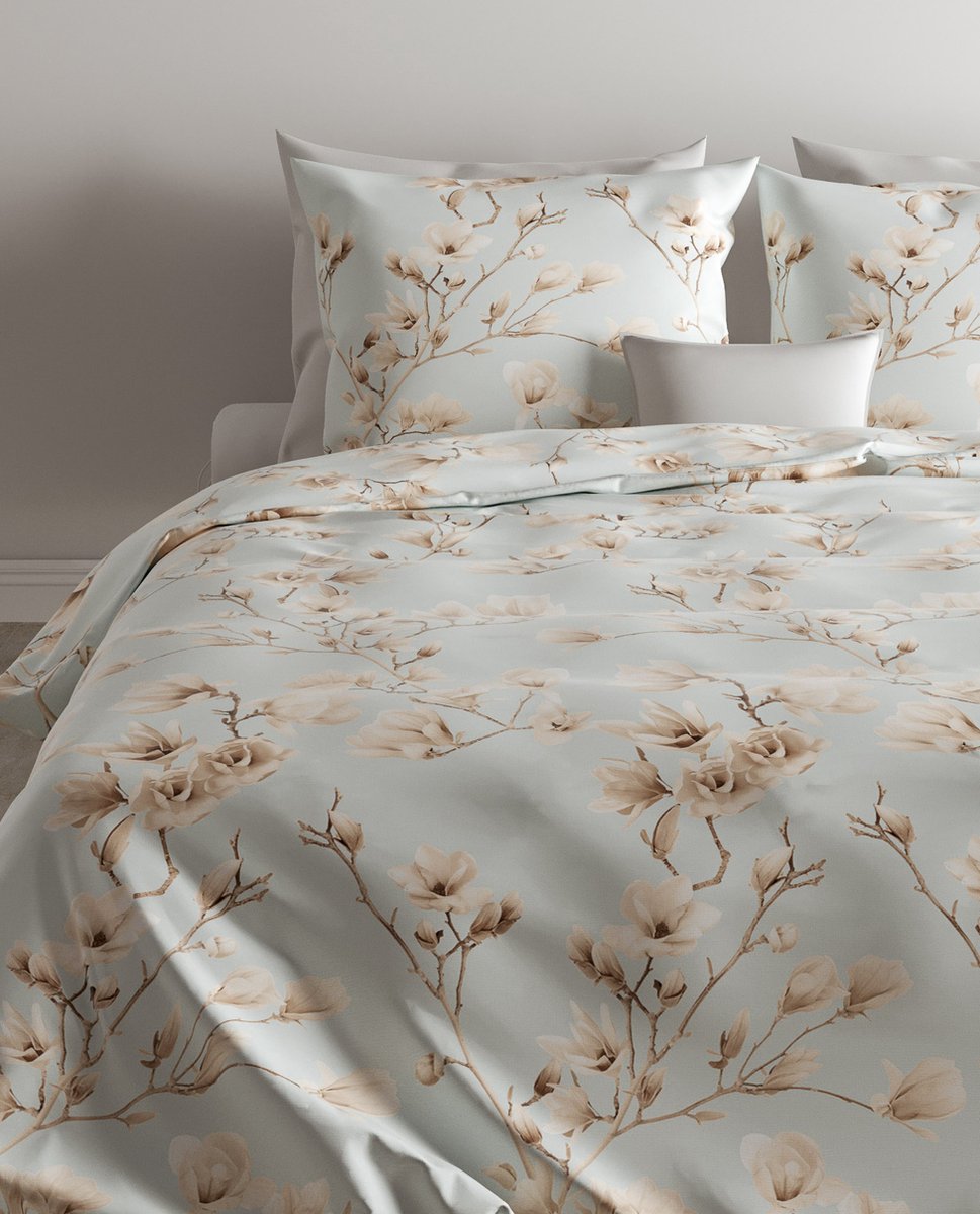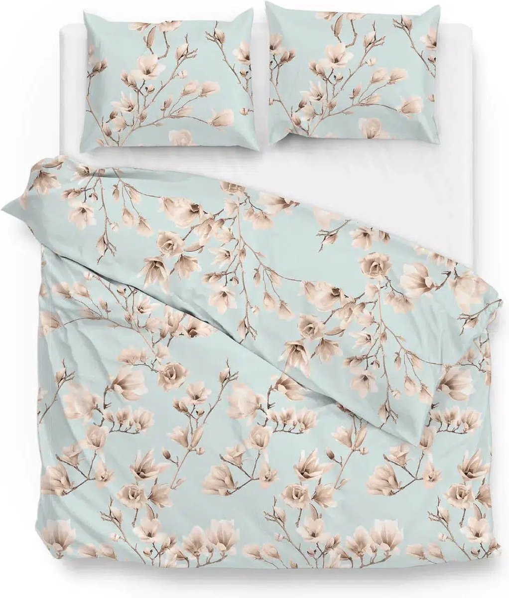 Het Zo!Home dekbedovertrek Moon heeft een vrolijke print met witte Magnolia's. De achtergrond heeft een frisse blauwe kleur die doet denken aan een helder blauwe lucht. Dit roept een gevoel op van een zonnige lentedag. Het dekbedovertrek is gemaakt van 100% katoen en hierdoor goed ademend en vochtabsorberend. Ideale eigenschappen voor beddengoed. Voorzien van een extra lange instopstrook. Hierdoor ook geschikt voor extra hoge matrassen. Verkrijgbaar in verschillende afmetingen. Het overtrek kan gewassen worden op 60 graden, kan in de droger op een lage temperatuur en kan ook gestreken worden.
