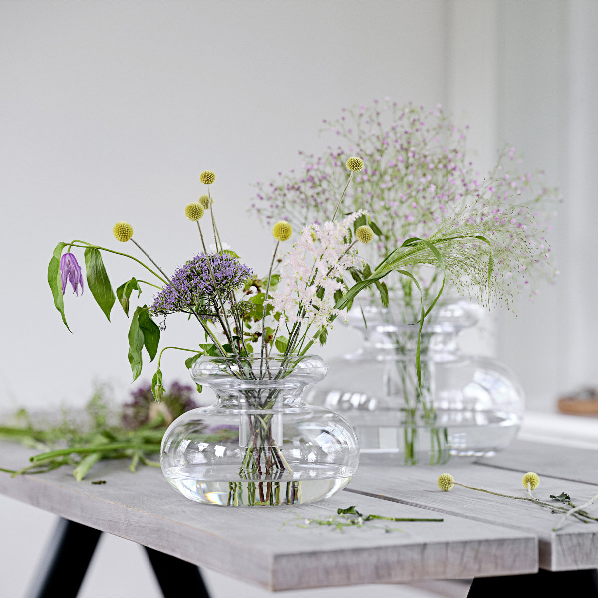 Wat haar extra bijzonder maakt? Je kunt het bovenste deel eraf halen én omdraaien om haar precies aan te passen aan jouw stijl en bloemen. Met het bovenste deel erop heeft de vaas een smalle opening, perfect voor een subtiel boeket of een paar sierlijke takken. Haal je het eraf, dan ontstaat er juist een ruime opening waarin een grote, weelderige bos bloemen helemaal tot zijn recht komt. En wil je een extra speels effect? Draai het bovenste deel om voor een boeket met lange stelen. Ideaal voor alle soorten bloemen dus! Deze ronde, glazen bolvaas is niet alleen stijlvol en veelzijdig, maar ook verkrijgbaar in drie formaten, zodat je kunt mixen en matchen voor een speelse look in huis!