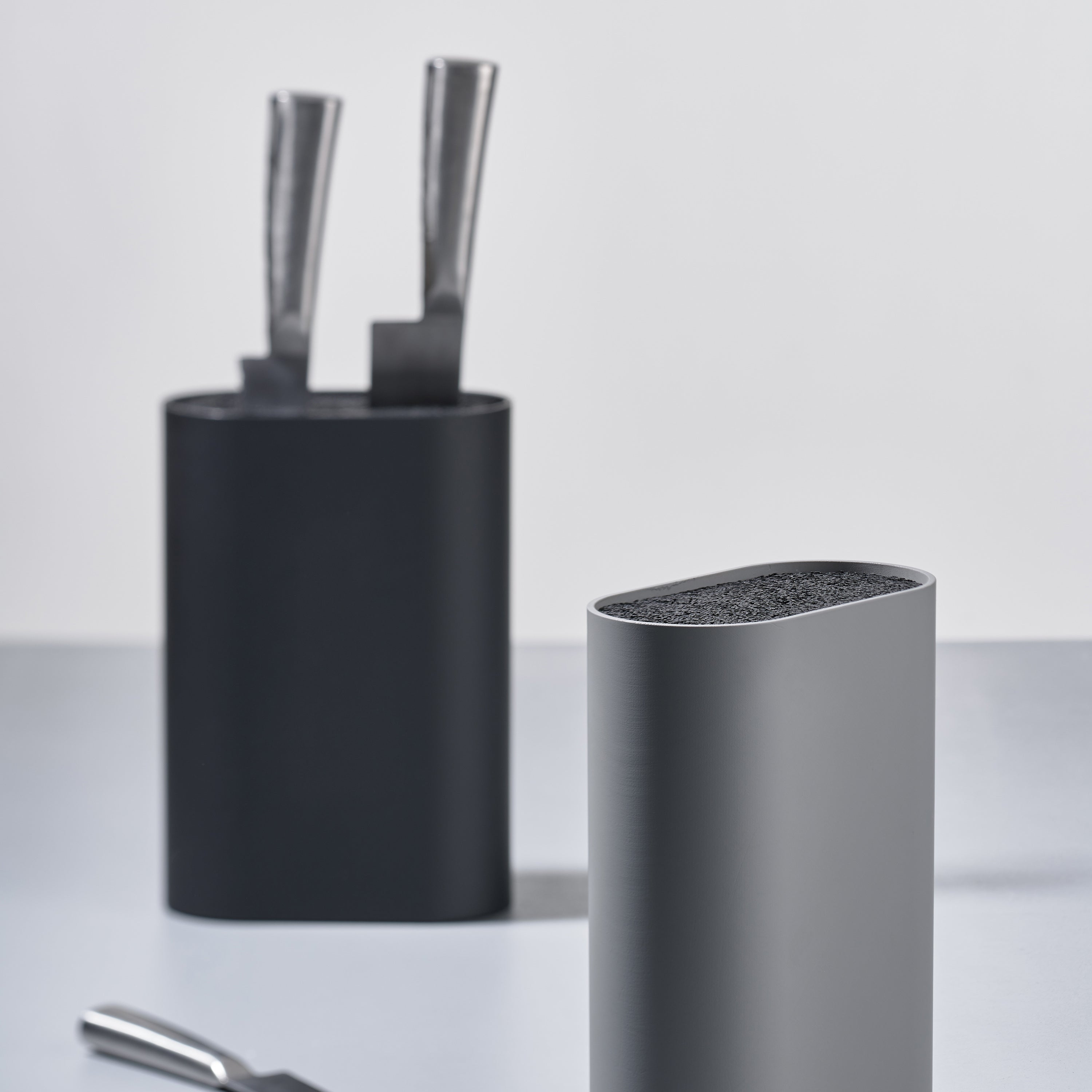 Dit eenvoudige Zone Singles messenblok heeft ruimte voor alle soorten messen. Dankzij het inzetstuk dat bestaat uit honderden dunne plastic spaghetti, kun je hem indelen zoals je wilt, of het nu dicht bij elkaar of met veel ruimte ertussen is.