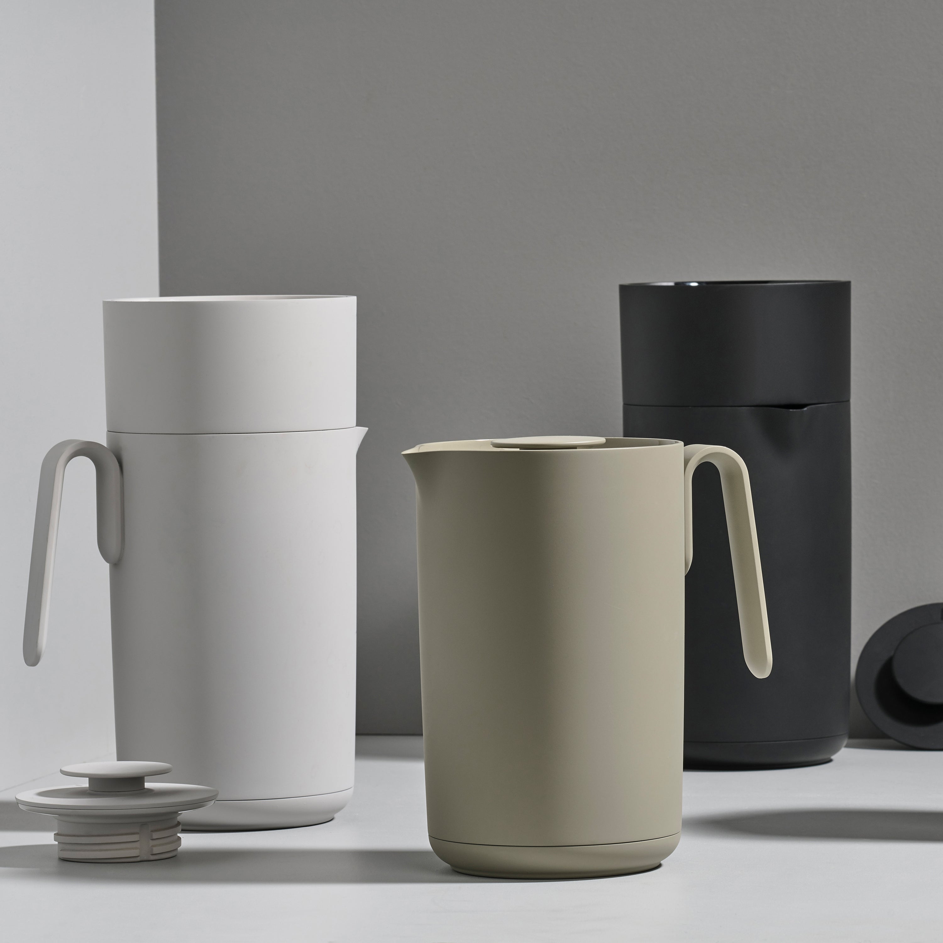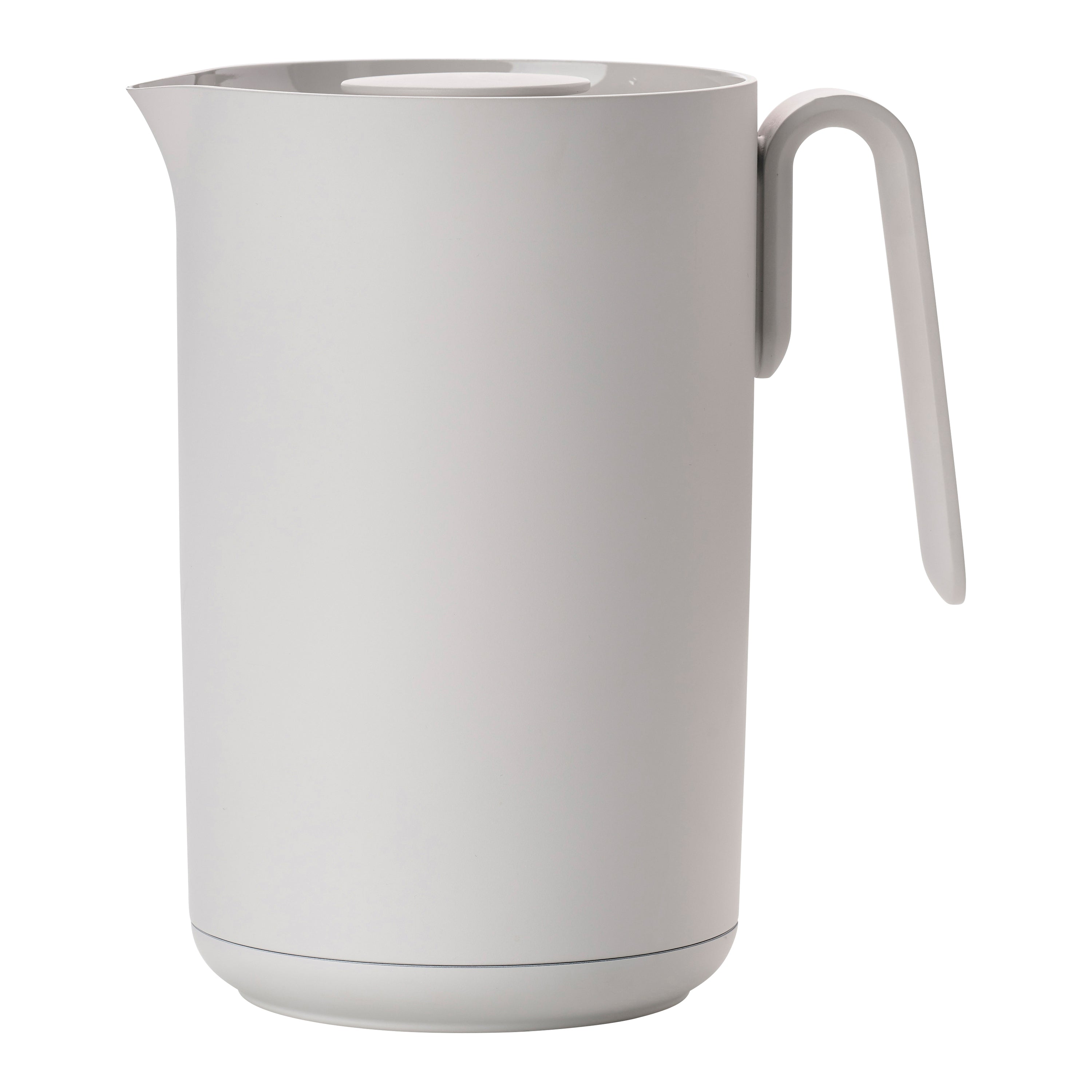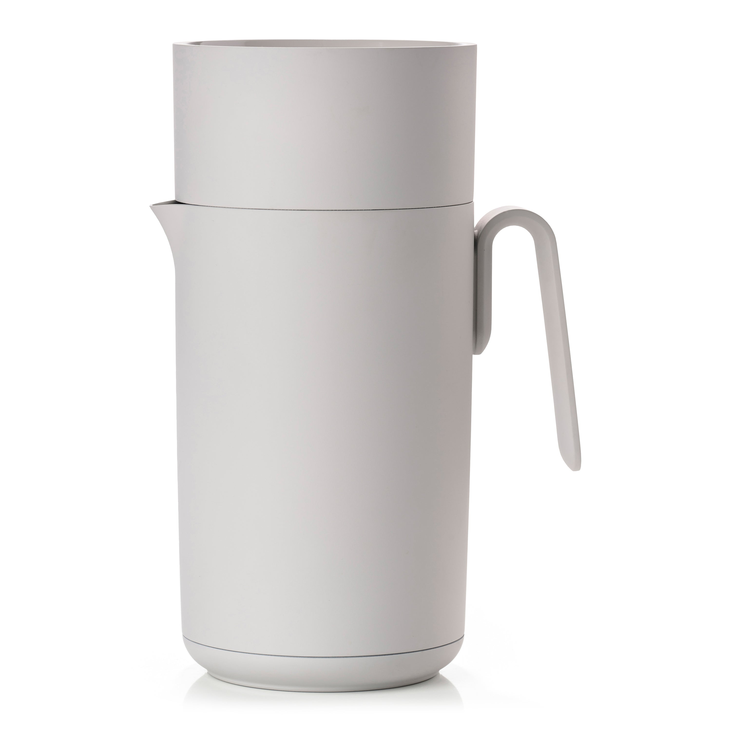 - De kan is gemaakt van kunststof en glas