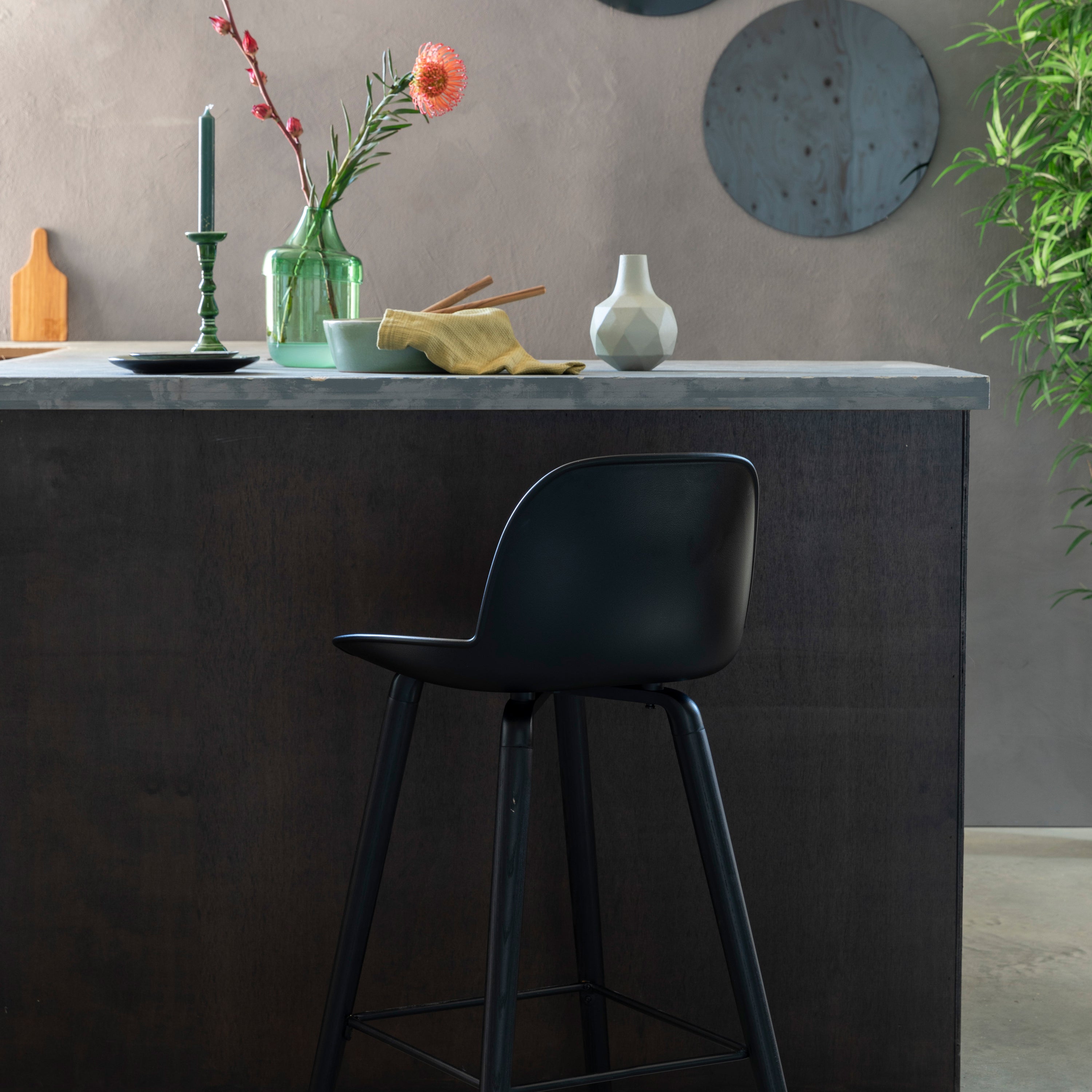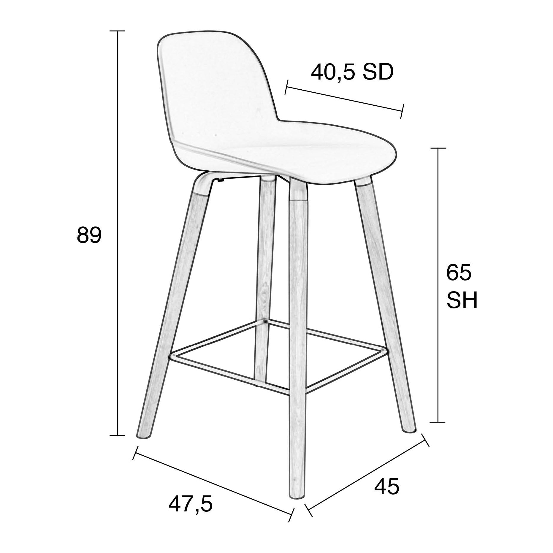 Deze mooie Albert Kuip barkruk zit door de bijzondere kuipvorm zeer aangenaam. Hij is gegoten in een mal en het kunststof is zo gevormd dat hij er ook nog eens elegant uit ziet. Het stevige onderstel is gemaakt van massief essenhout met een aluminium voetsteun. Hierdoor staat deze hippe jongen zeer stevig op zijn poten.
