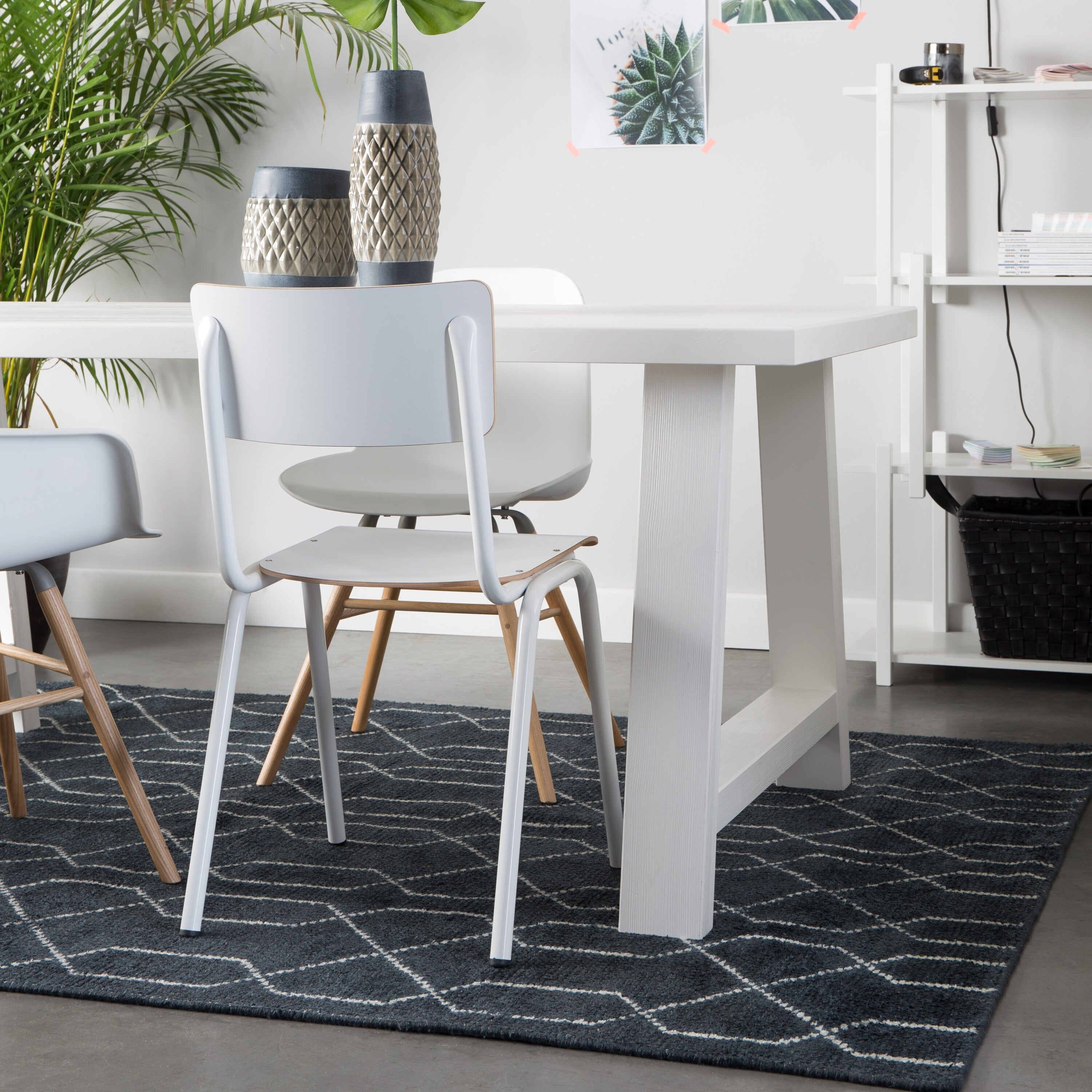 De hoogte van de zitting, gemeten vanaf de vloer. De ideale zithoogte bevindt zich tussen de 40 en 46 cm. Je zit het lekkerst met een ruimte van ongeveer 20 cm, tussen de stoelzitting en de onderkant van het tafelblad.