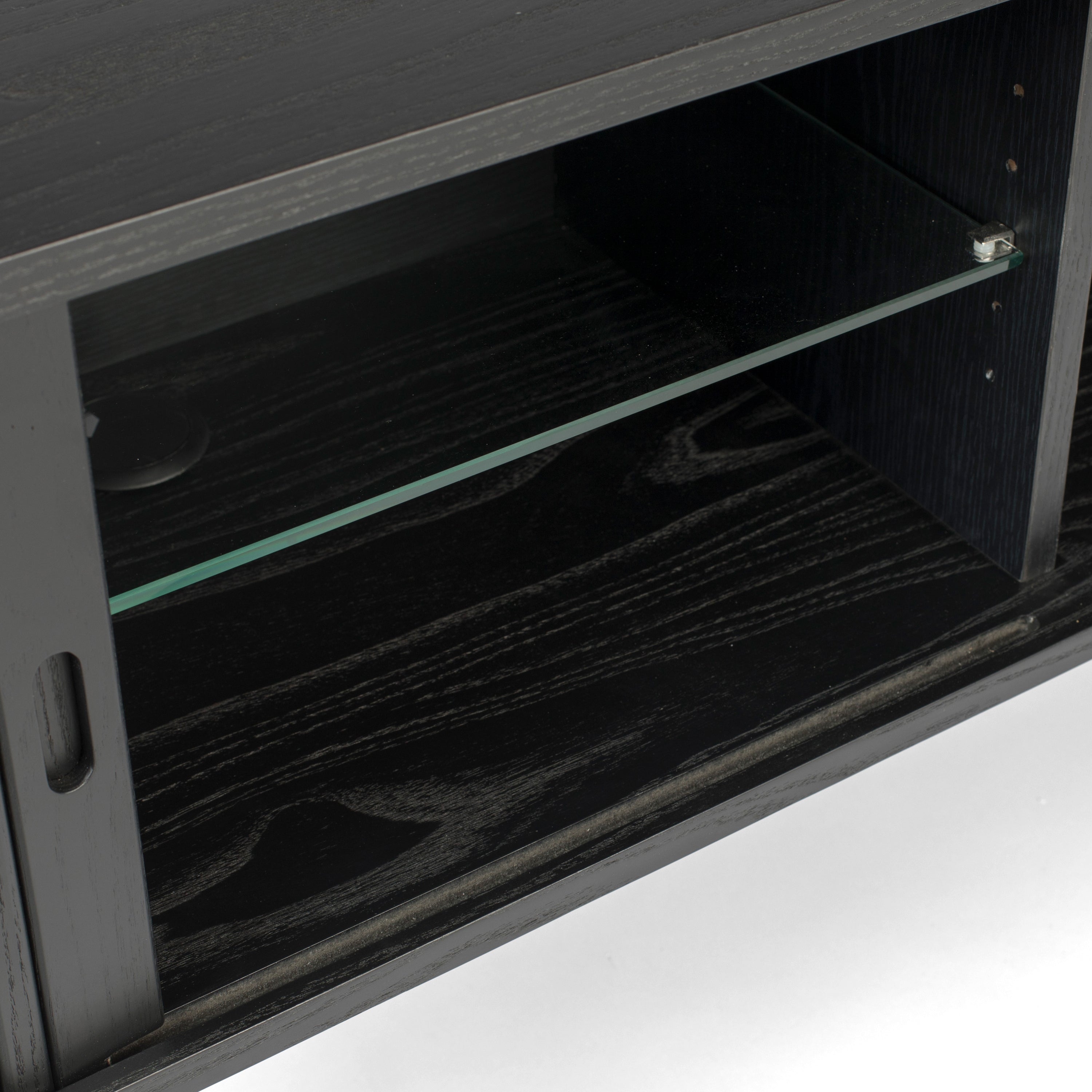 - Met 2 glazen planken en houten tussenschot