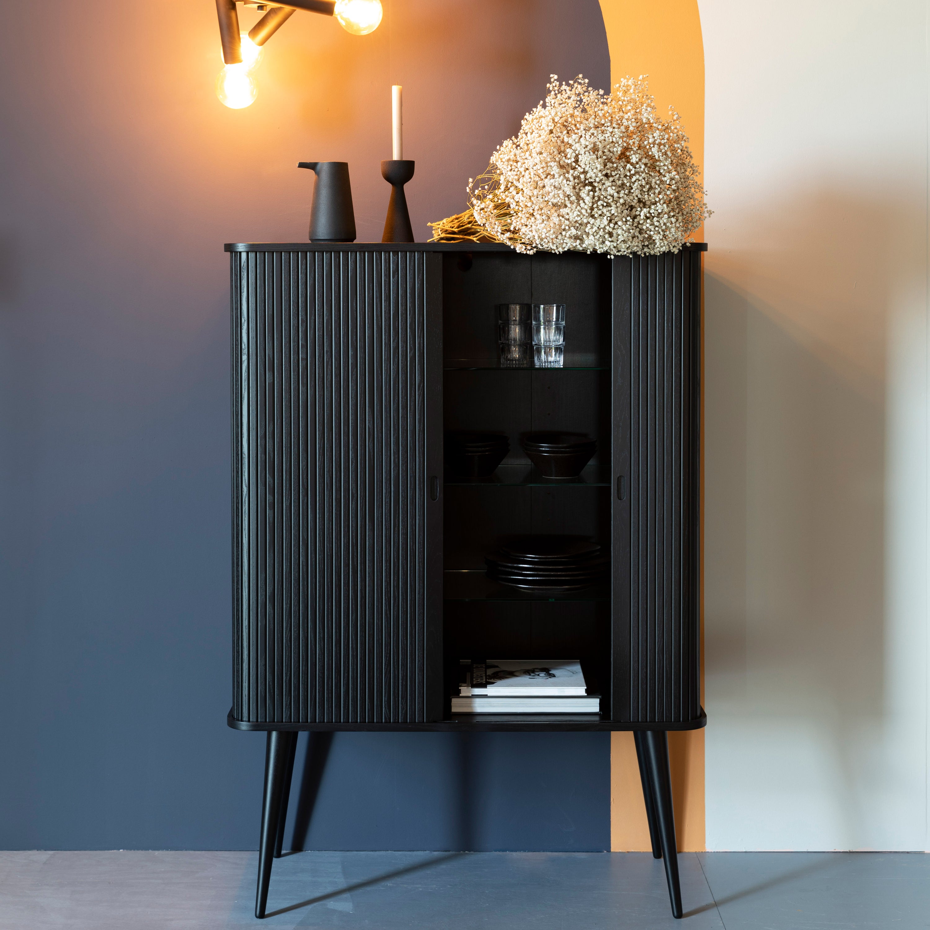 Nu zie je het, nu niet meer! Natuurlijk heeft de Barbier-kast deuren, maar die zijn niet alleen ontworpen om de inhoud uit het zicht te houden. Half geopend is deze Barbier het perfecte decor voor je mooiste accessoires of een dierbare collectie.