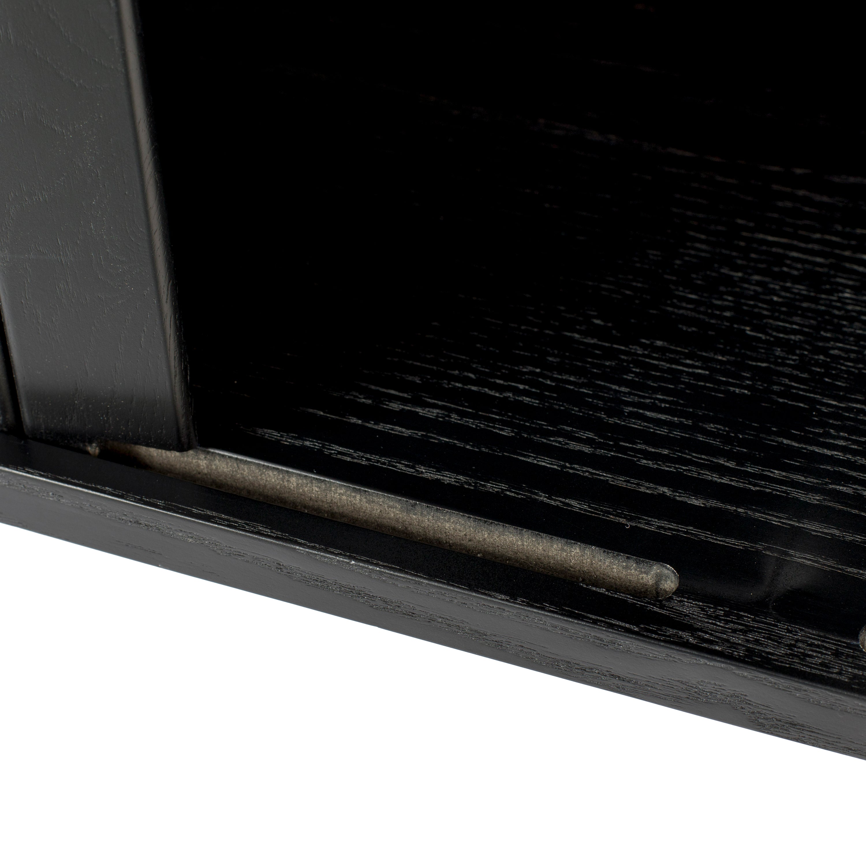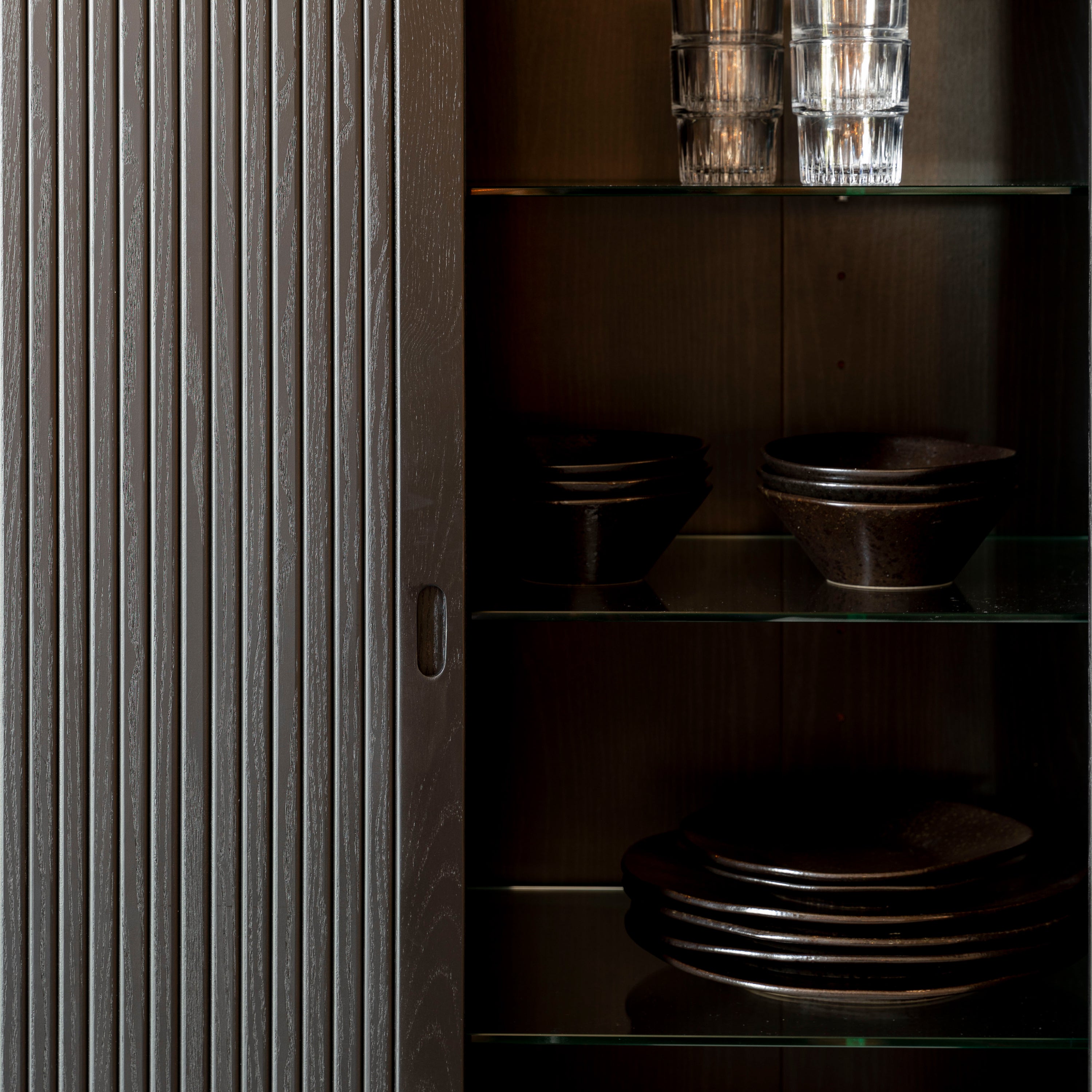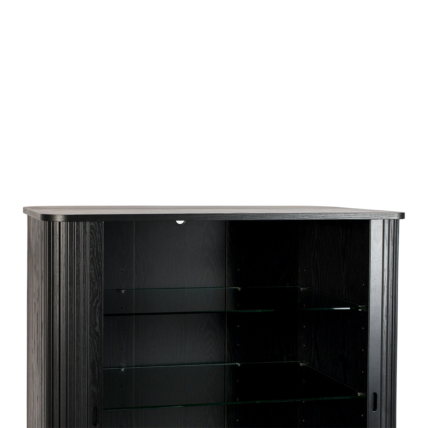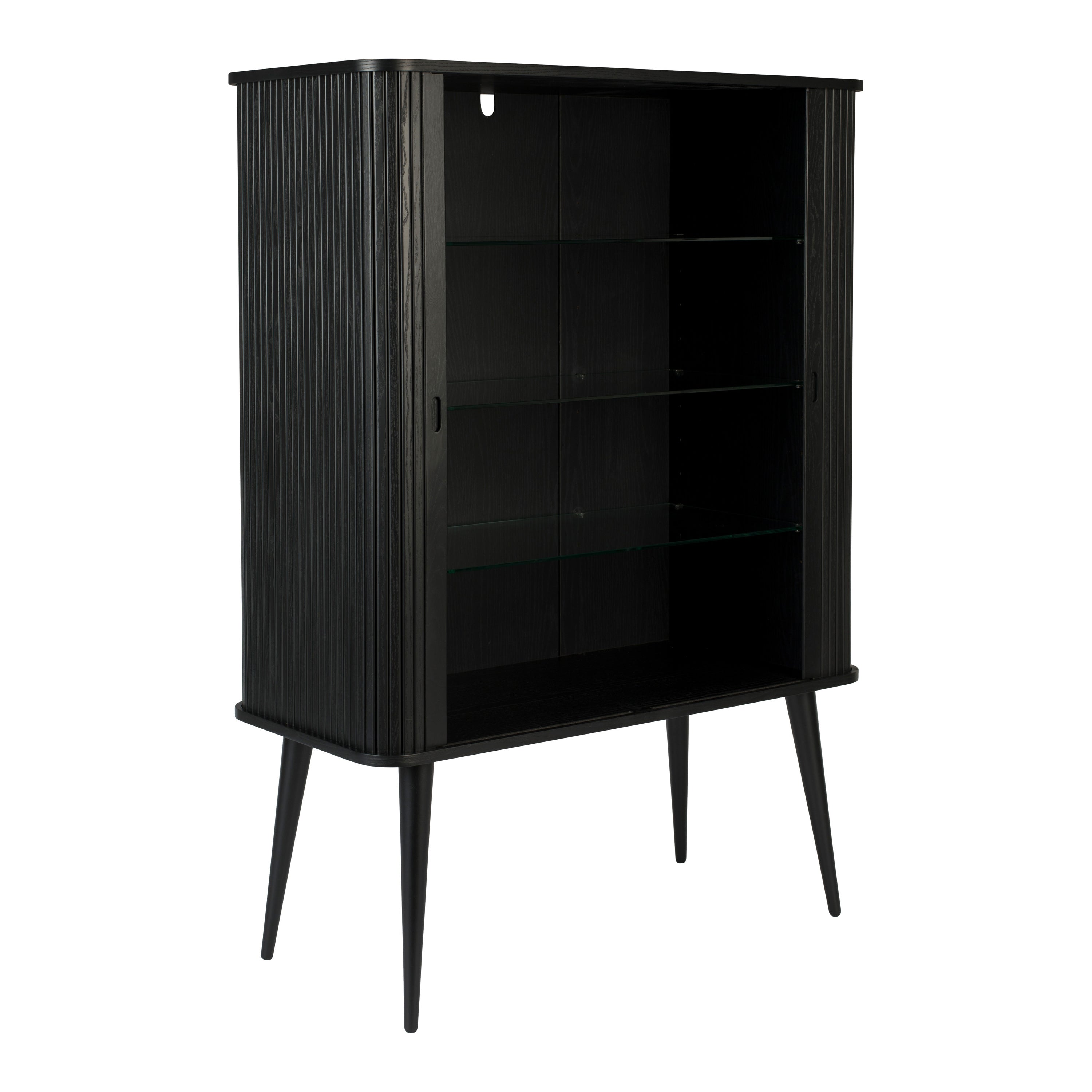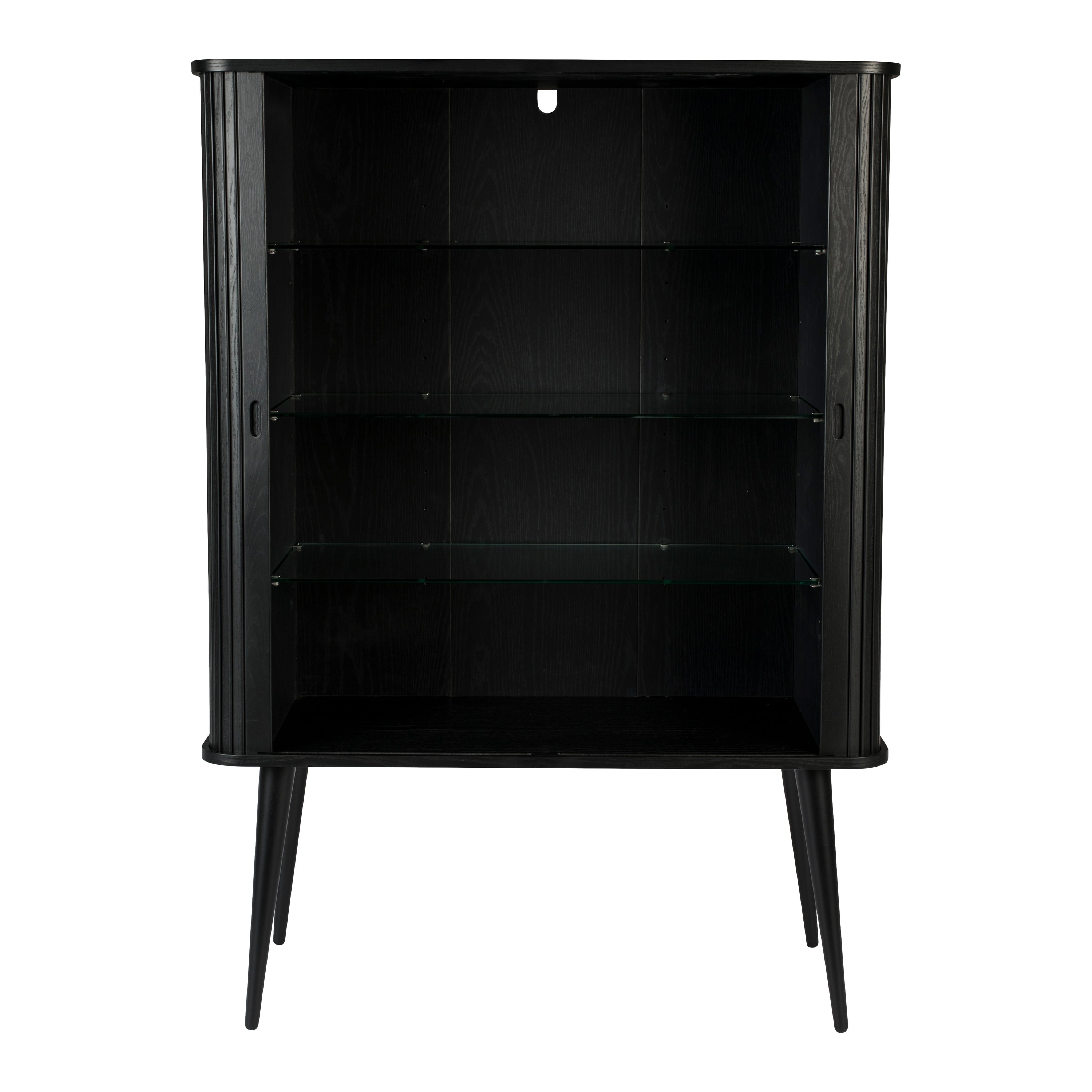 De fantastische schuifdeuren werken als theatervleugels; jij bepaalt zelf hoe groot het podium voor je mooiste accessoires is. De drie glazen planken aan de binnenkant zorgen ervoor dat jouw collectie optimaal tot zijn recht komt.