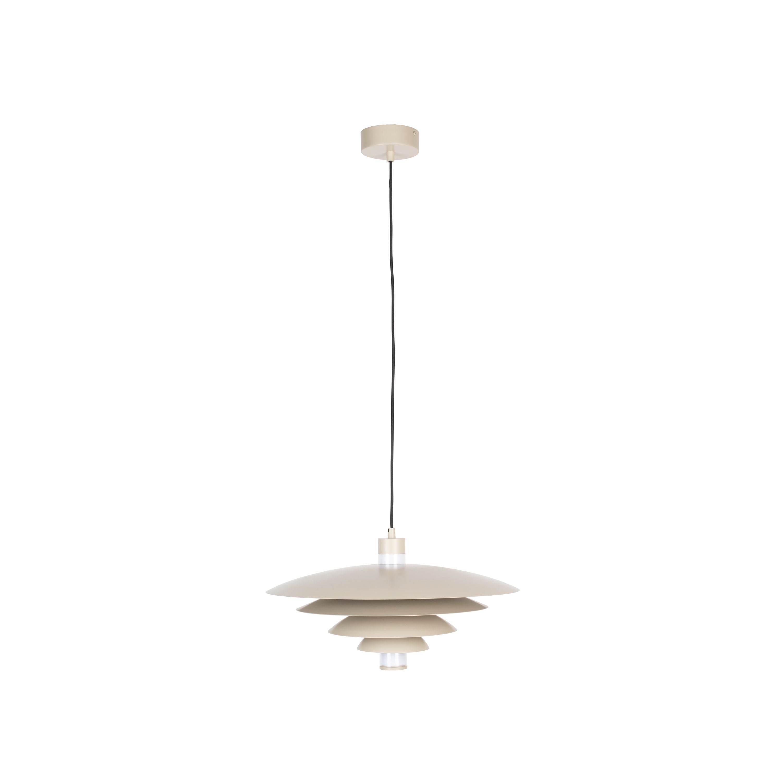 - Creëert een warme ambiance terwijl het licht zich verspreidt over de ronde kap.