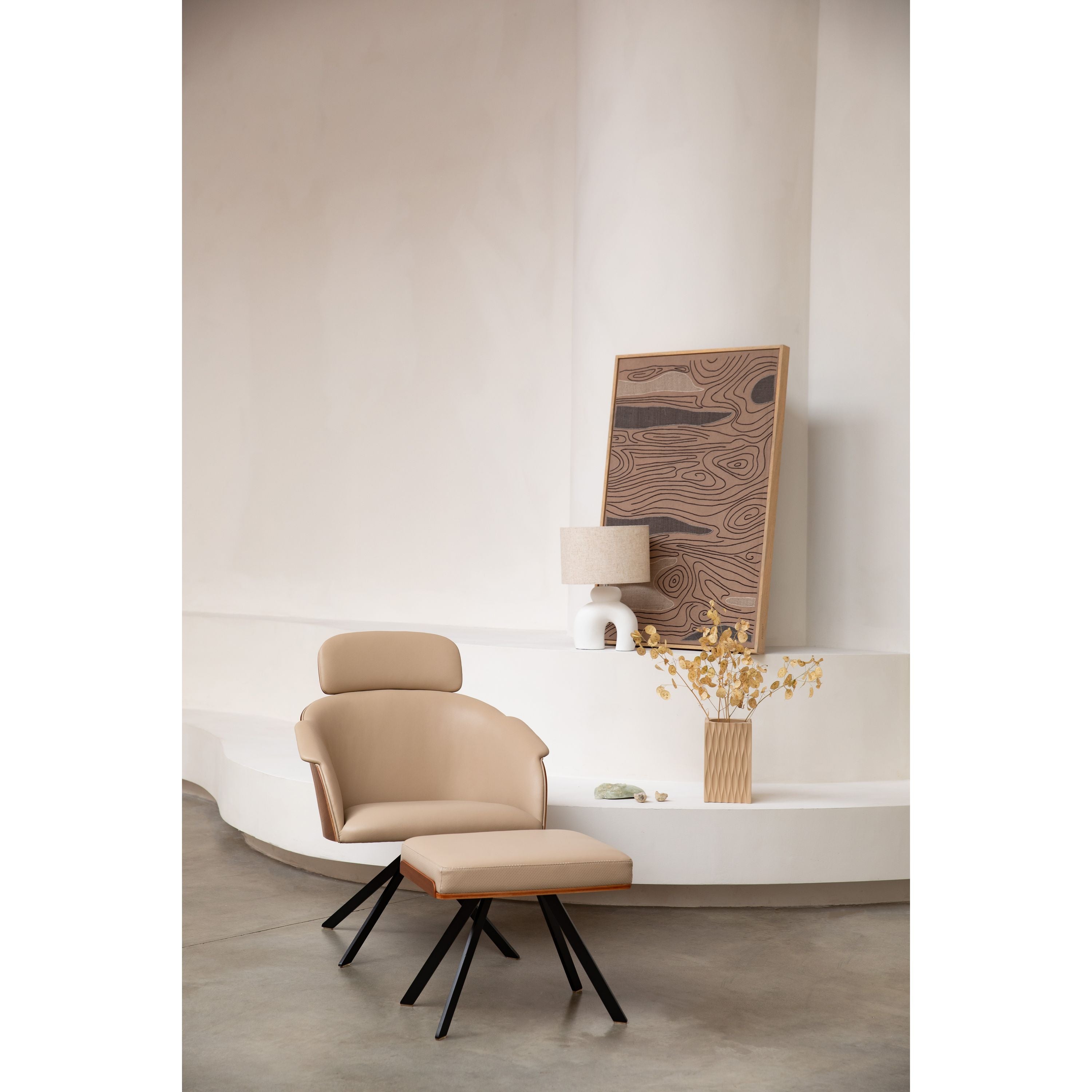 - Komt als elegante fauteuil en bijpassende stool om je voeten op te laten rusten.
