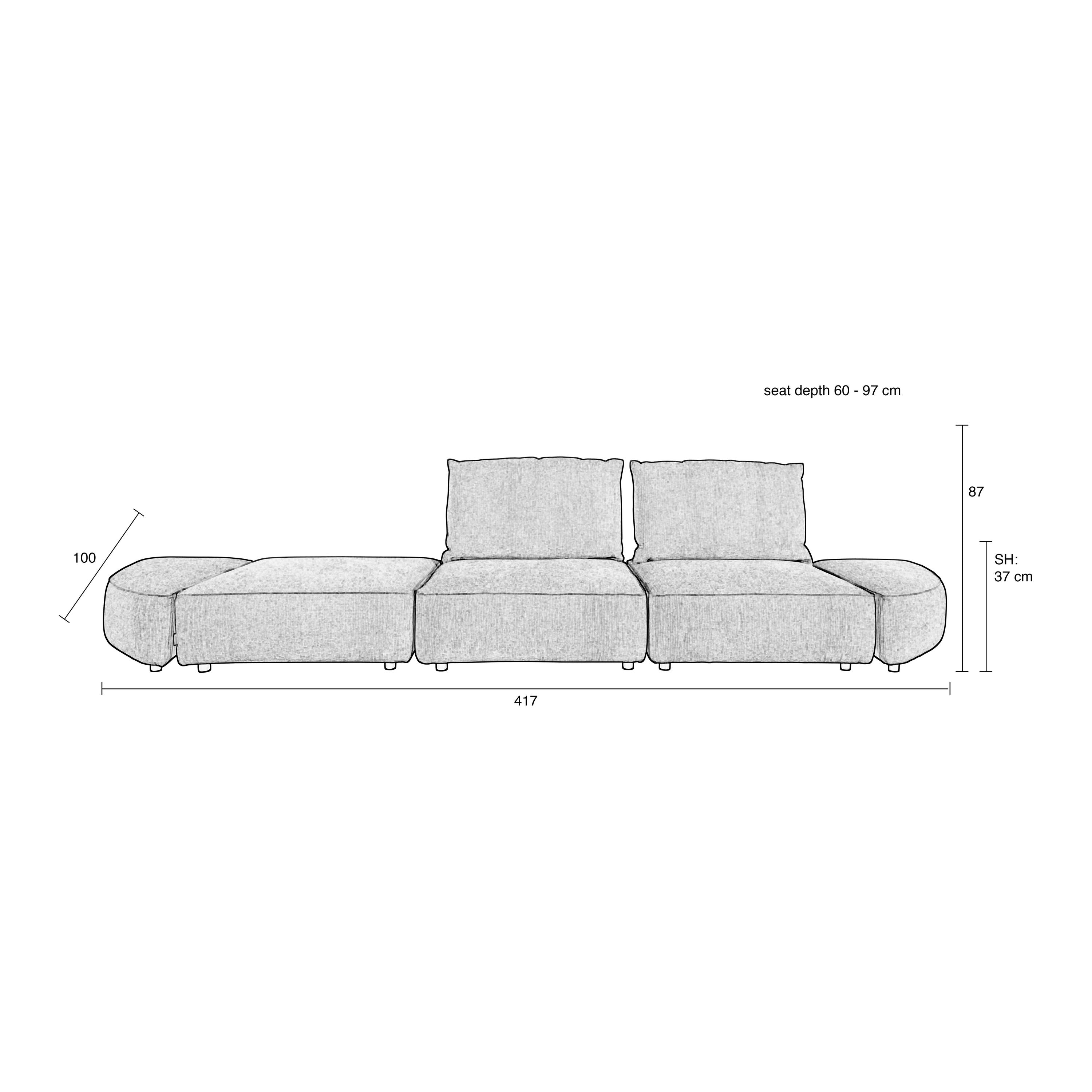 - Moderne 4,5-zitsbank van: H 87 x B 417 x D 100 cm
