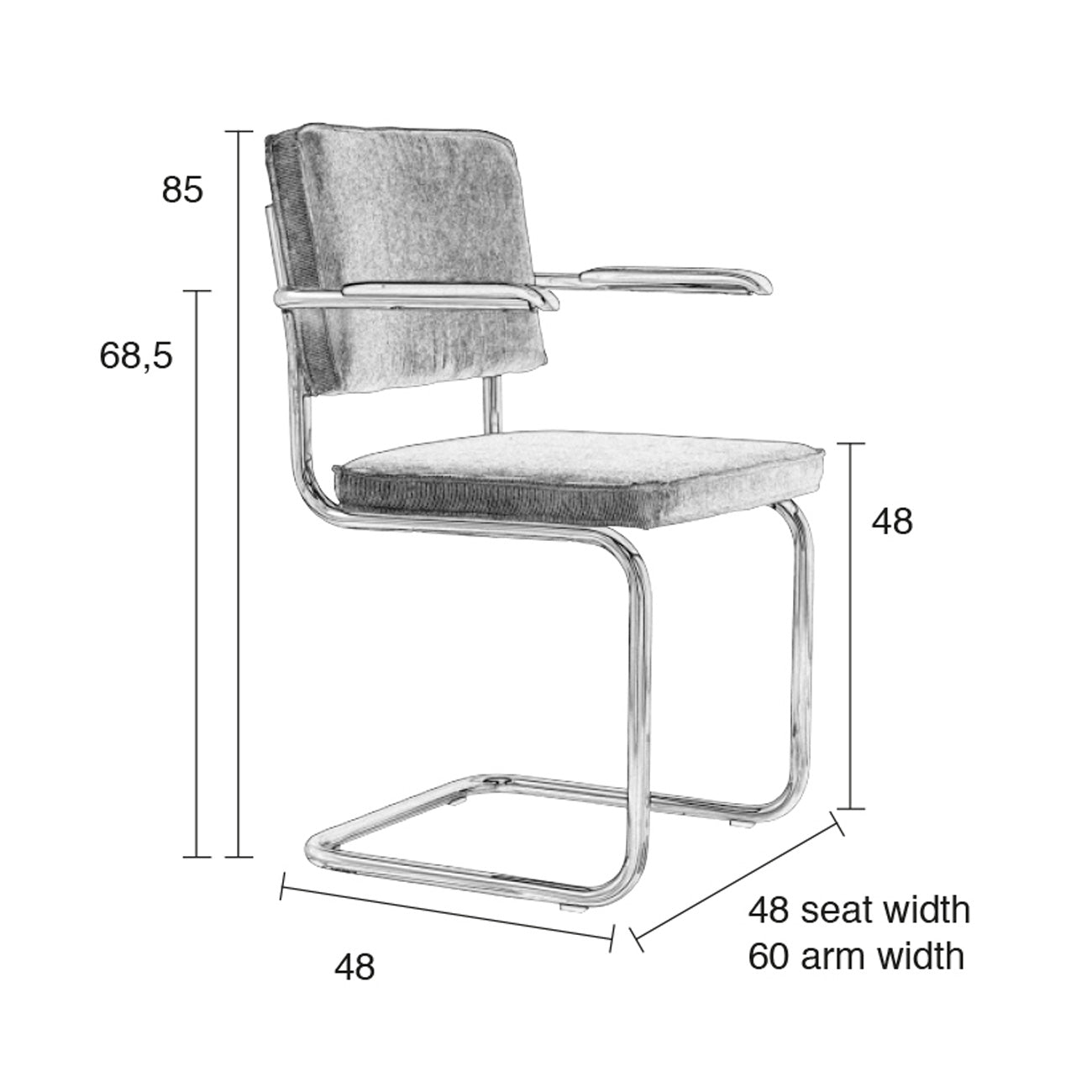 De Zuiver Ridge Rib stoel met leuning is een comfortabele stoel met een prachtig design. Het retro ribfluweel gecombineerd met het tijdloze chroombuis frame maakt de stoel een geweldige toevoeging aan het interieur.