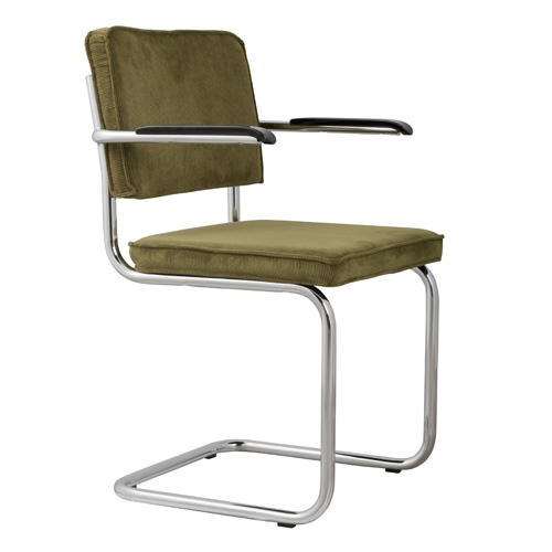 Zuiver Ridge Eetkamerstoel met Armleuningen - Ribstof - Groen