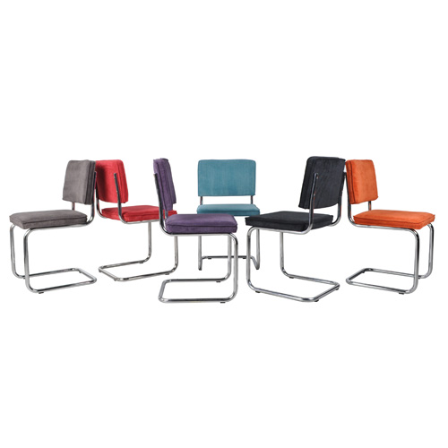 Trendy eetkamerstoel De Ridge Rib stoel van Zuiver past helemaal in de trend van nu, toch heeft deze stoel een tijdloze uitstraling. Dat betekent dat je er nog jaren mee vooruit kunt. De stoere ribstof gecombineerd met het chroombuis design geven de stoel een fraaie uitstraling. Dankzij het slimme buisframe veert de stoel een beetje. Dit maakt de stoelen zeer geschikt voor aan de eettafel. Gezellig, urenlang natafelen!