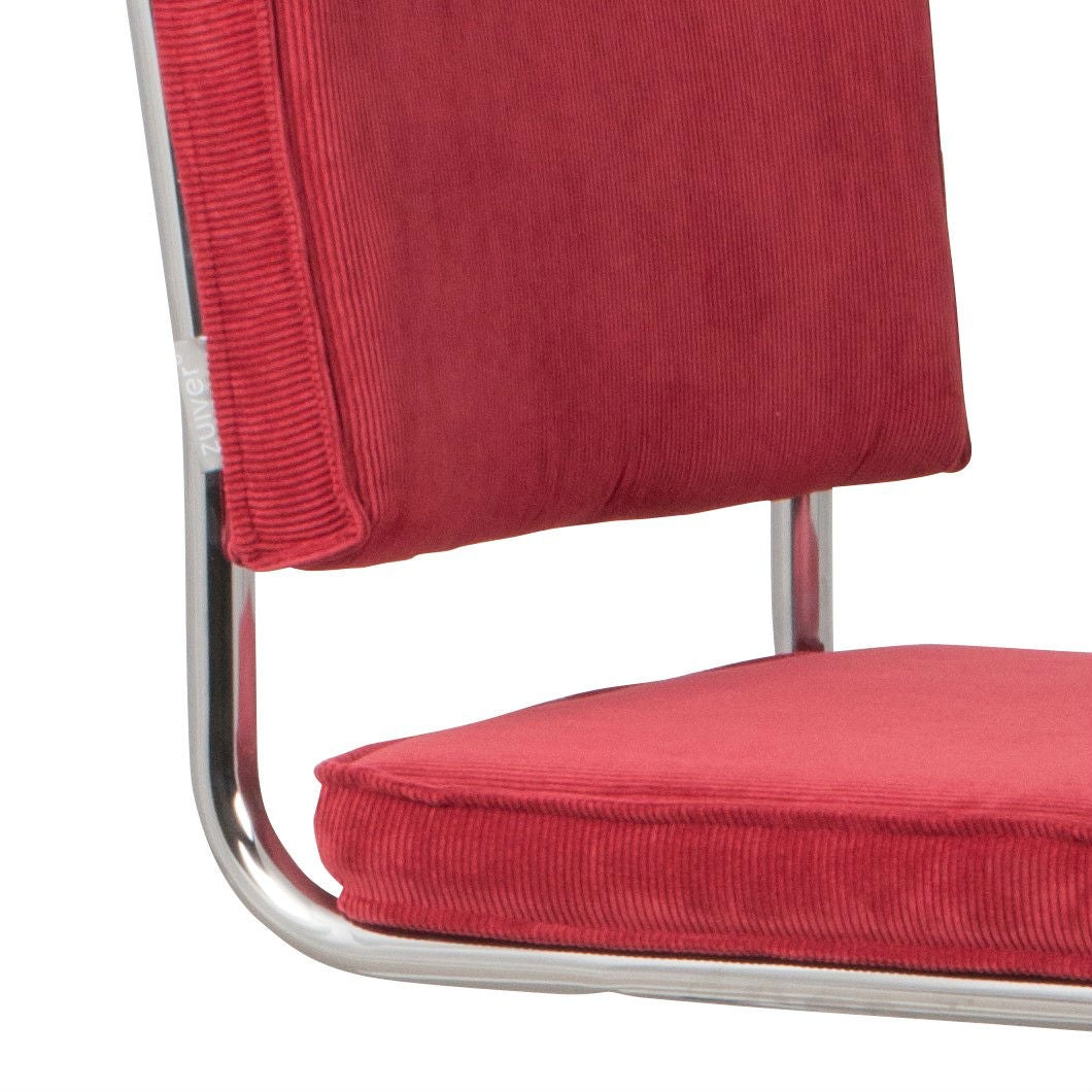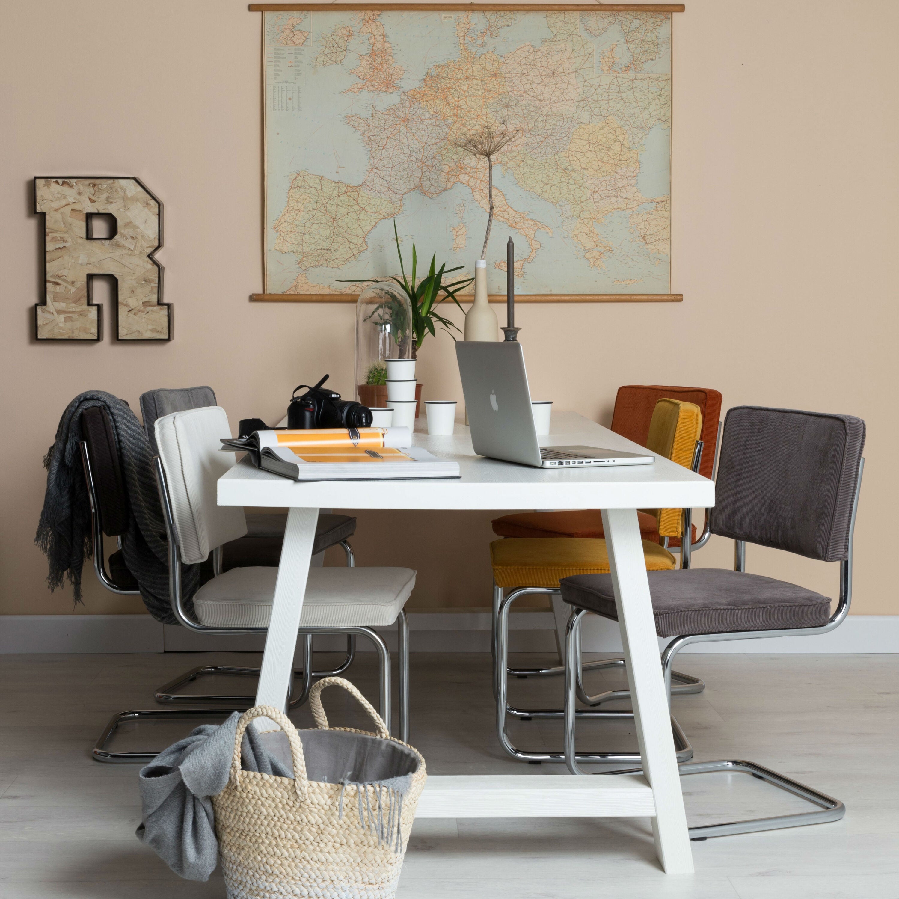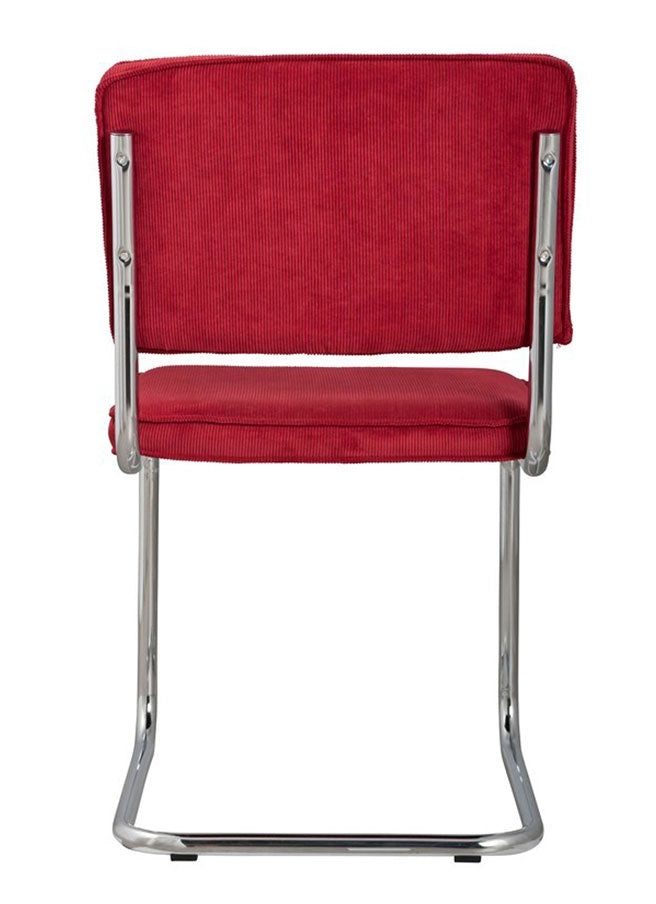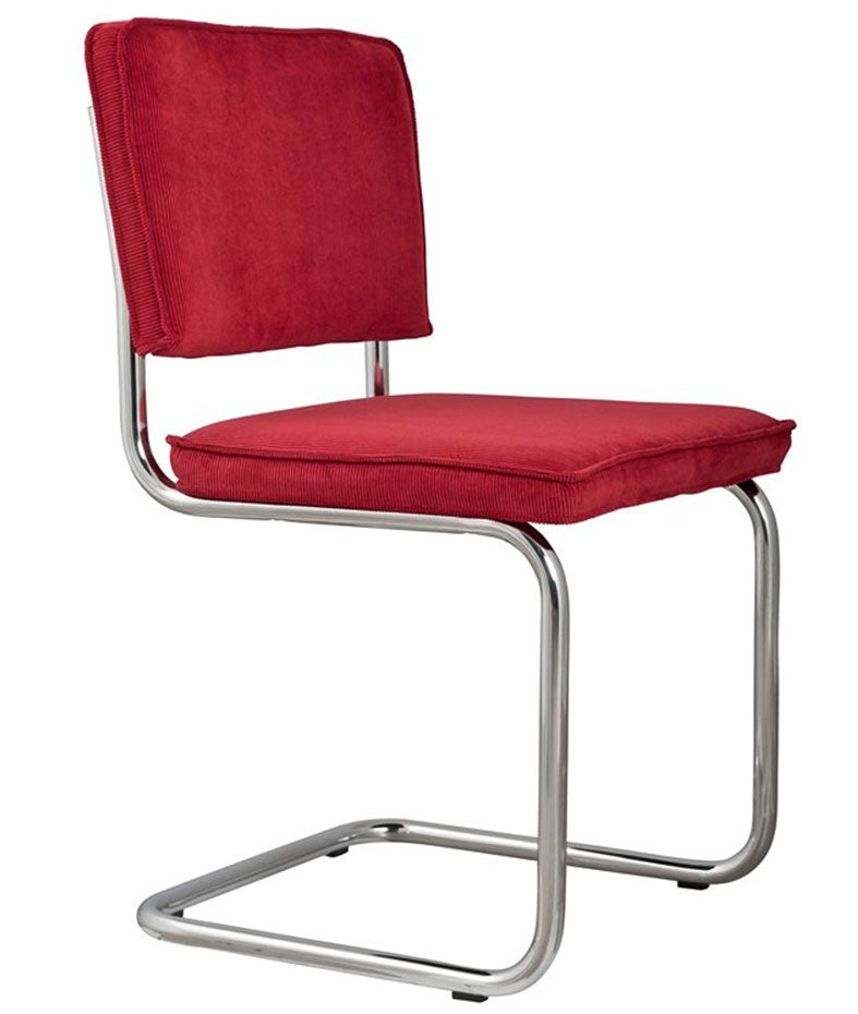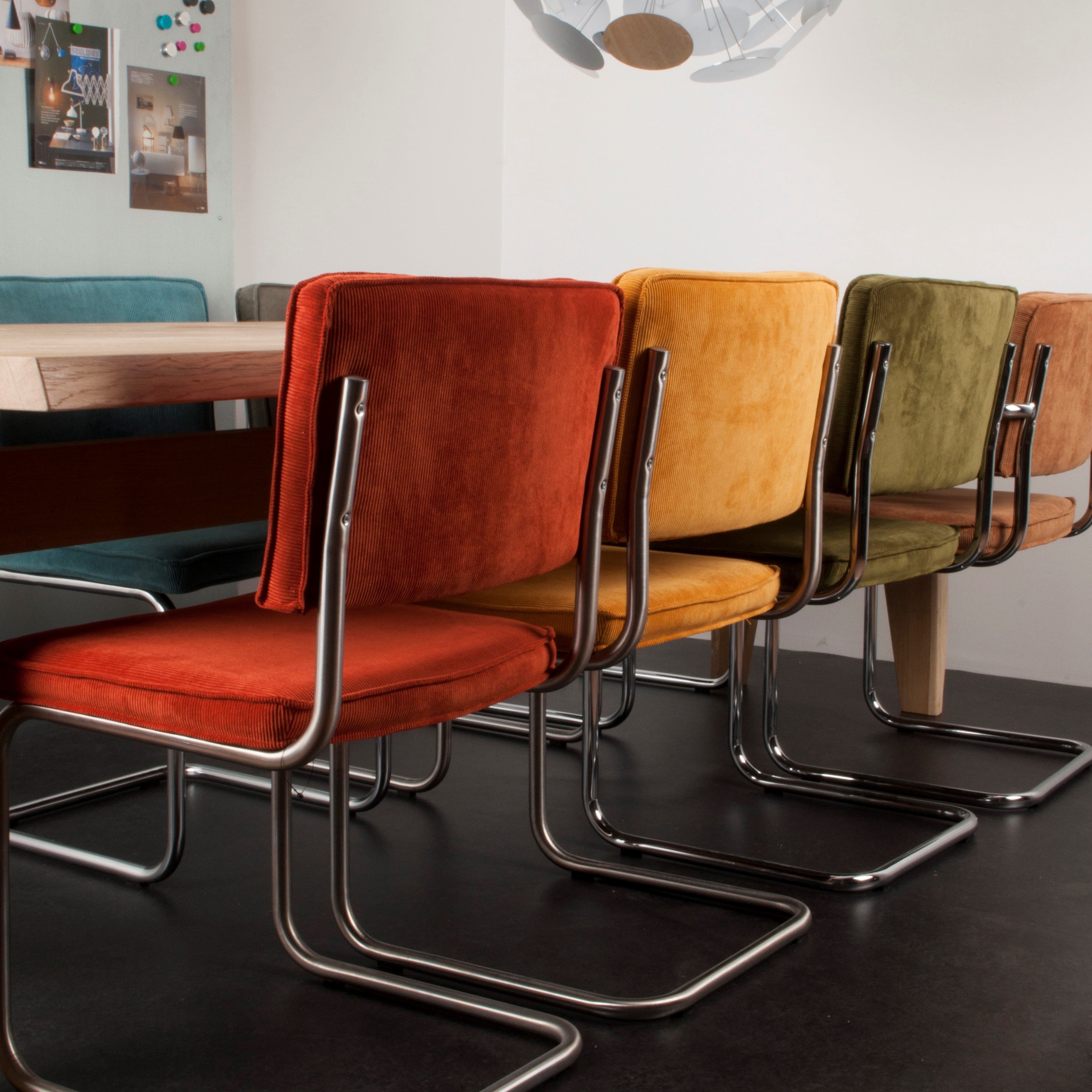Trendy eetkamerstoel De Ridge Rib stoel van Zuiver past helemaal in de trend van nu, toch heeft deze stoel een tijdloze uitstraling. Dat betekent dat je er nog jaren mee vooruit kunt. De stoere ribstof gecombineerd met het chroombuis design geven de stoel een fraaie uitstraling. Dankzij het slimme buisframe veert de stoel een beetje. Dit maakt de stoelen zeer geschikt voor aan de eettafel. Gezellig, urenlang natafelen!