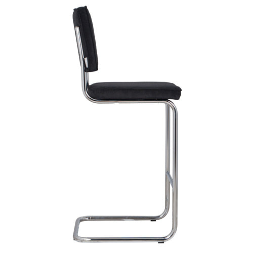 De bartafel wordt steeds populairder zowel binnen als buiten. Gezellig borrelen of eten aan een hoge tafel zorgt voor een geheel andere sfeer. Deze Ridge Rib Barstoel sluit perfect aan op deze trend! De comfortabele barkruk is uitgevoerd in een mooie, dikke kwaliteit ribstof en veert heerlijk mee. Bovendien heeft hij een handig voetsteuntje. Combineer de Zuiver Ridge Rib barstoel met een fraaie hoge tafel voor een unieke eet/drink hoek.