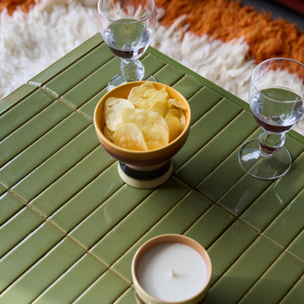 - Volledig bedekt met langwerpige tegeltjes voor een opvallende look