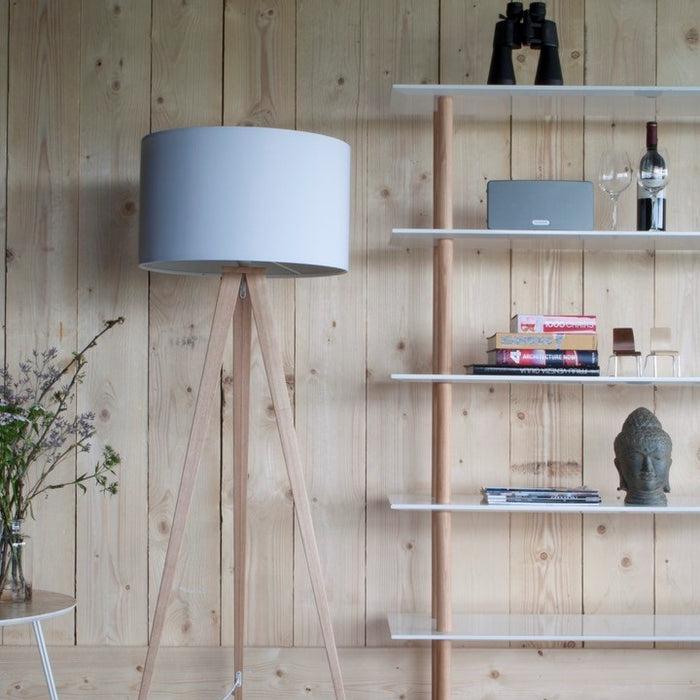 - Stevige lampvoet is gemaakt van metaal met houtfineer