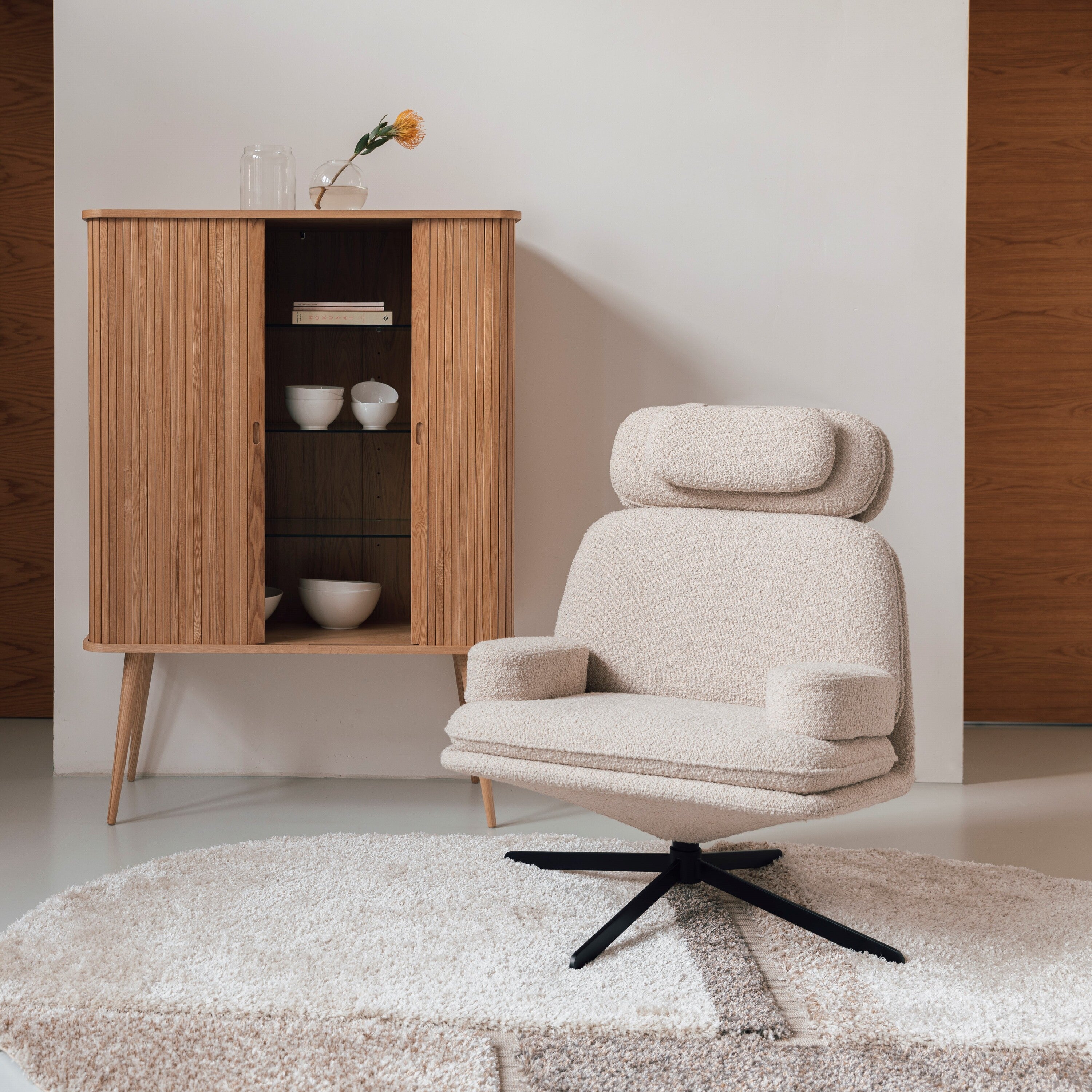 - Met een bouclé zitting van 81% polyester en 19% acryl