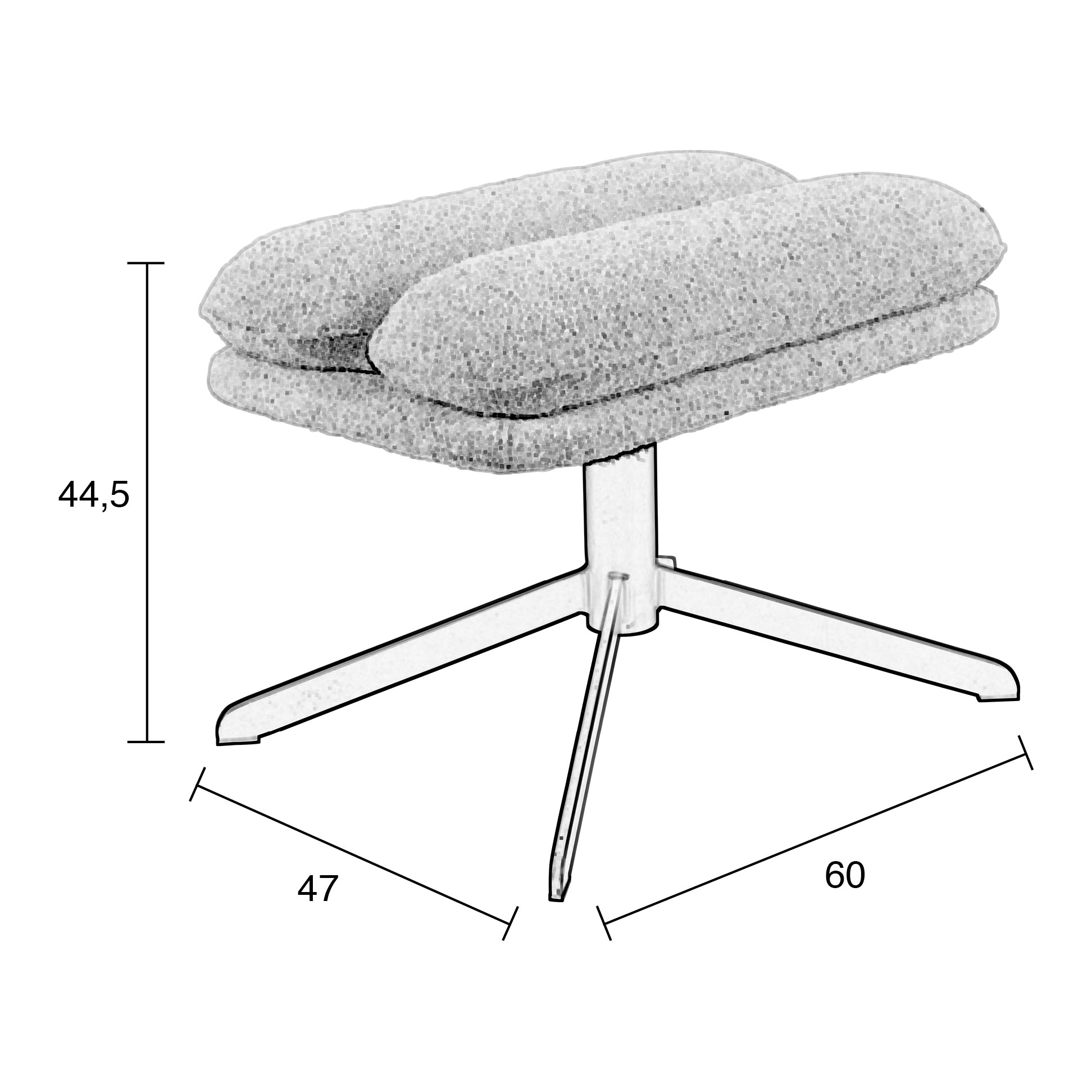 - Hippe hocker van: 44,5 x B 60 x D 47 cm