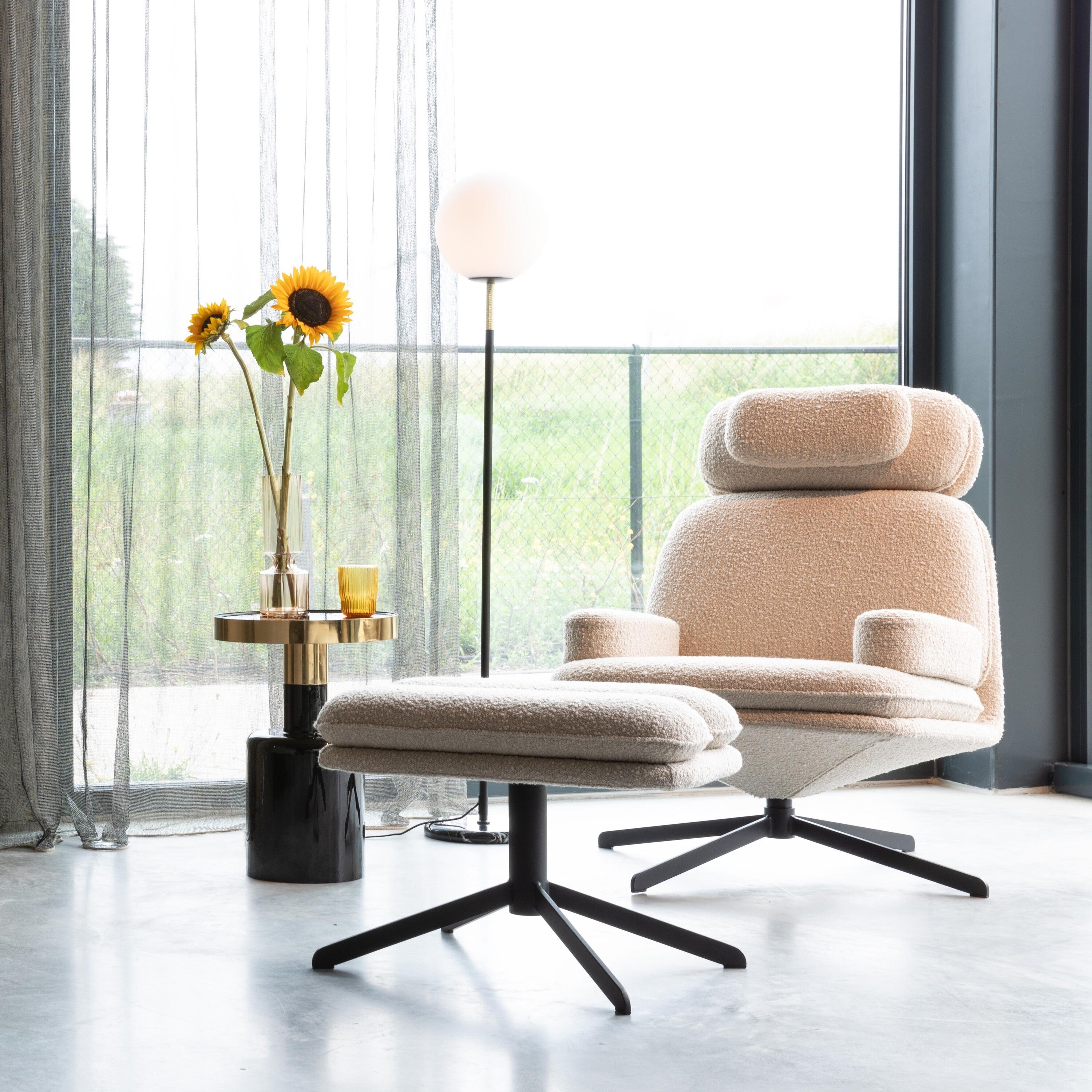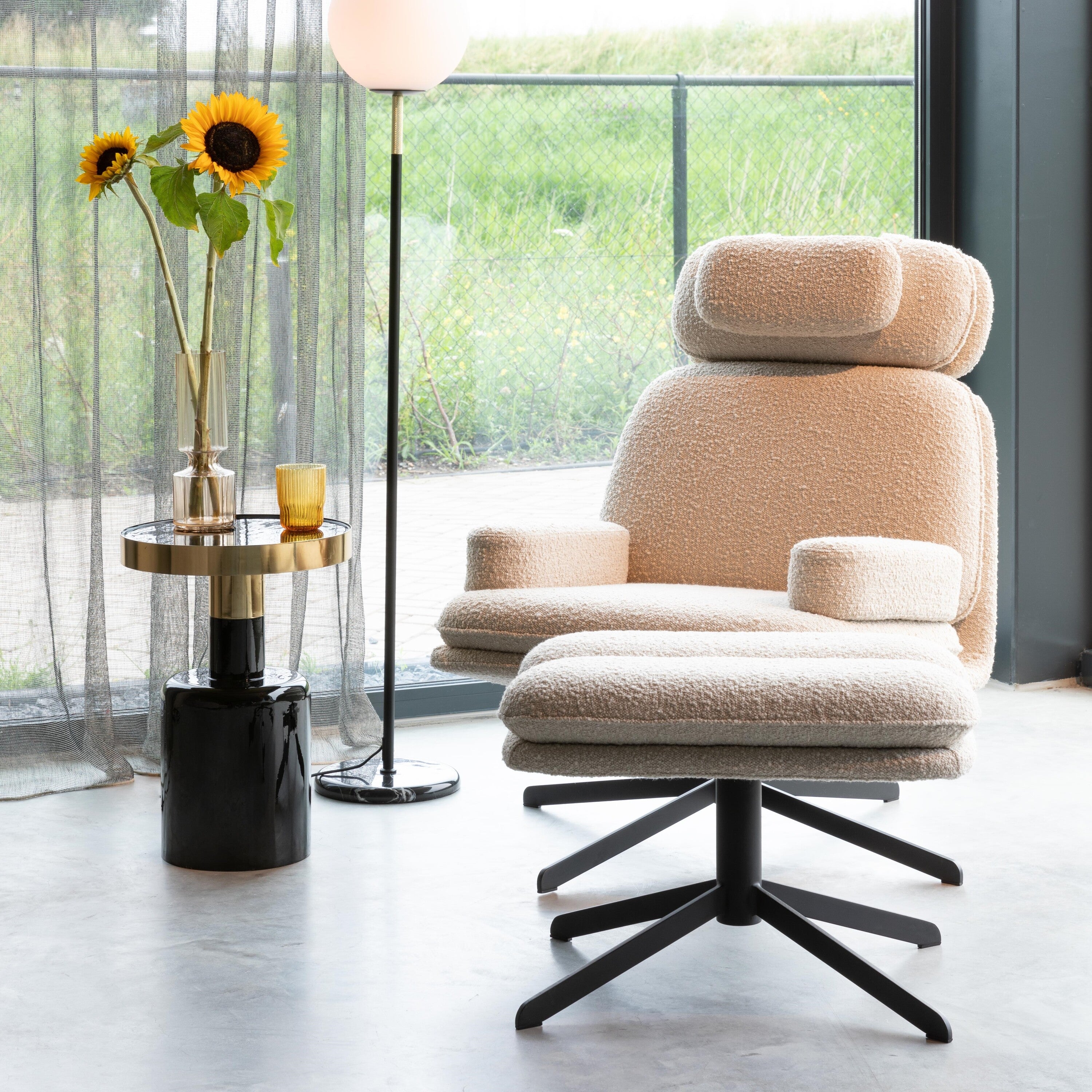 - Mix van bouclé en zwart staal: stijlvol!