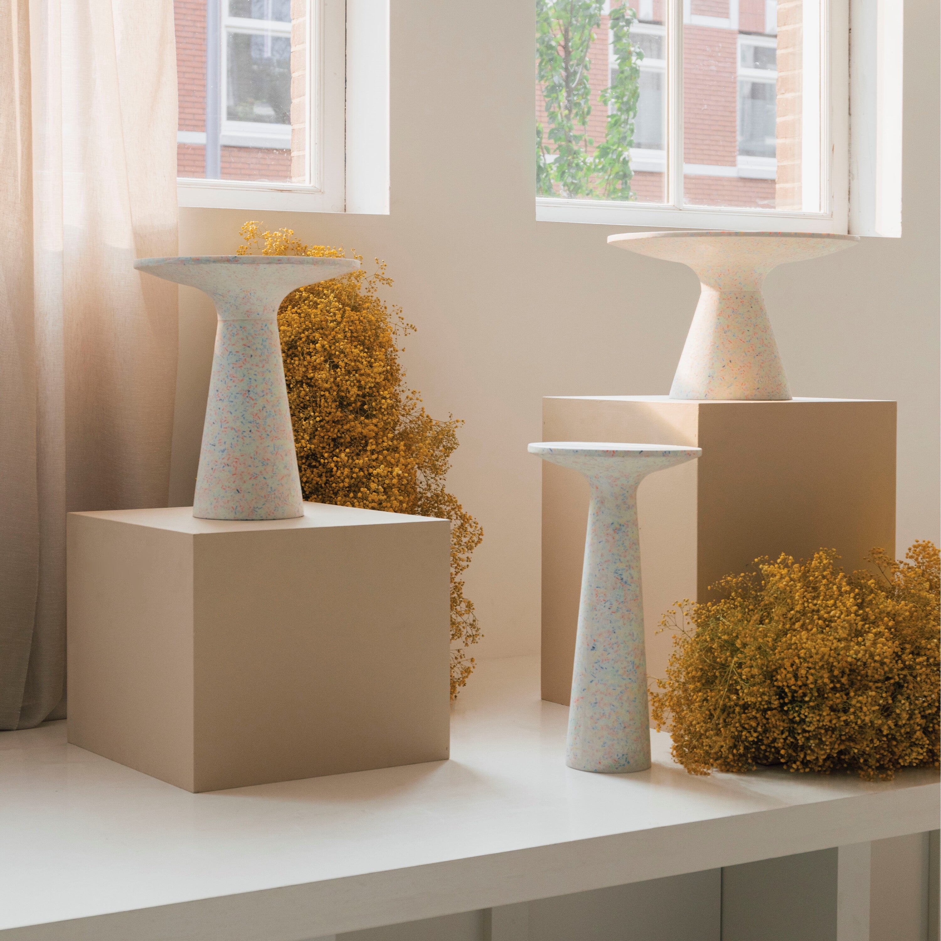 - Gemaakt van terrazzo en gerecycled speelgoed