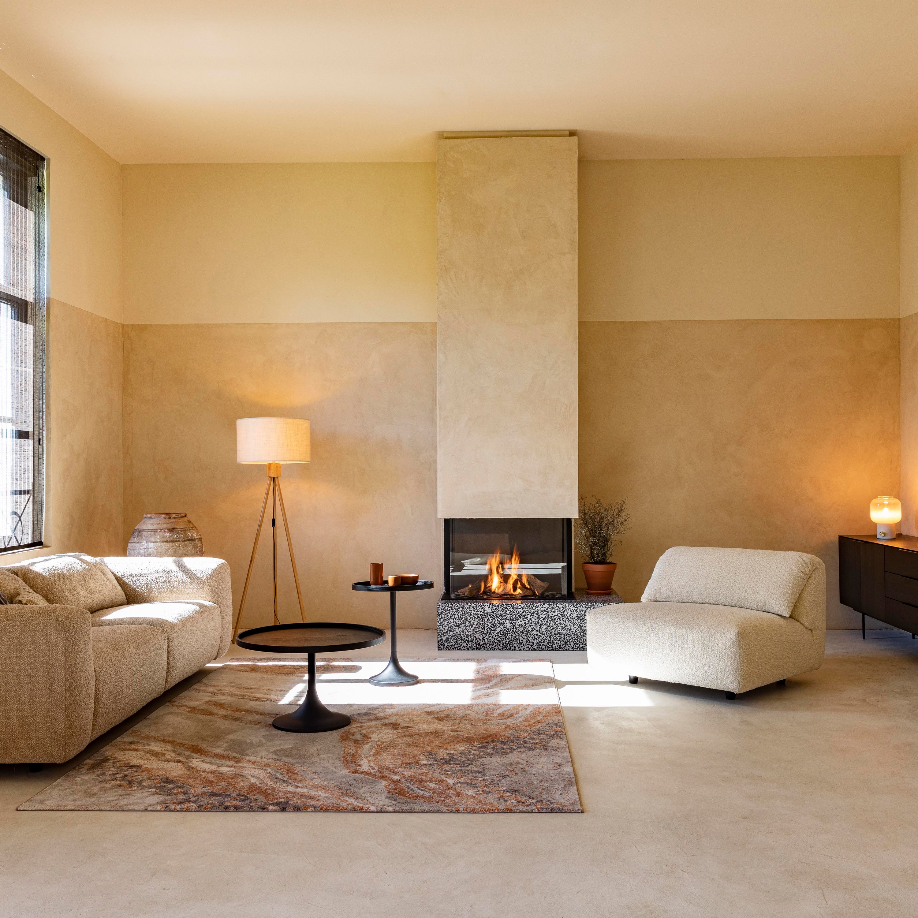 Wings collectie Zuiver In de Wings collectie van Zuiver wordt stijl gecombineerd met comfort en functionaliteit. De aardse tinten in combinatie met de ronde vormen voegen warmte en diepte toe aan het interieur en zorgen voor een zachte en rustige sfeer in huis. Daarnaast hebben de meubels een opklapbare rugleuning, zo kun je de zithouding aanpassen aan jouw stemming. Door het opklappen van de rugleuning creëer je een zitdiepte van 70 cm en een hoogte van 150 cm, perfect voor een ontspannen zit. Liever een actievere zit? Klap de rugleuning dan weer in. Met een ingeklapte rugleuning is de zitdiepte 57 cm en heeft de bank een hoogte van 72 cm.